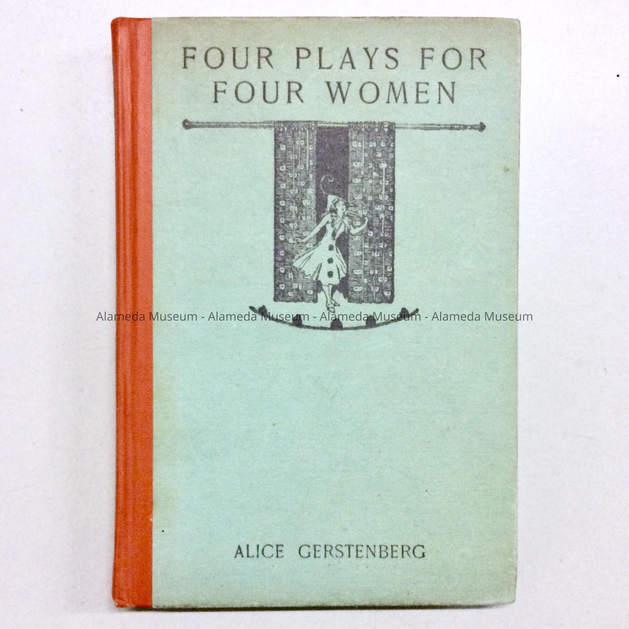 DESCRIPTION: HARDBOUND BOOK WITH A COVER THAT HAS A CAPTION, "FOUR PLAYS FOR WOMEN" BY ALICE GERSTENBERG, IN BLACK COLORED TYPE ON A PALE GREEN COLORED BACKGROUND.