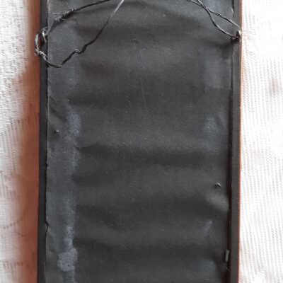 DESCRIPTION: A SEPIA-TINTED PHOTOGRAPHIC PORTRAIT THAT IS UNDER GLASS IN A NATURAL WOOD FRAME WITH BEADED, GILDED TRIM. PHOTO HAS ITS ORIGINAL PAPER LABEL ON THE REVERSE SIDE THAT READS, "SMITH BROS. STATIONERS, OAKLAND, CA.”