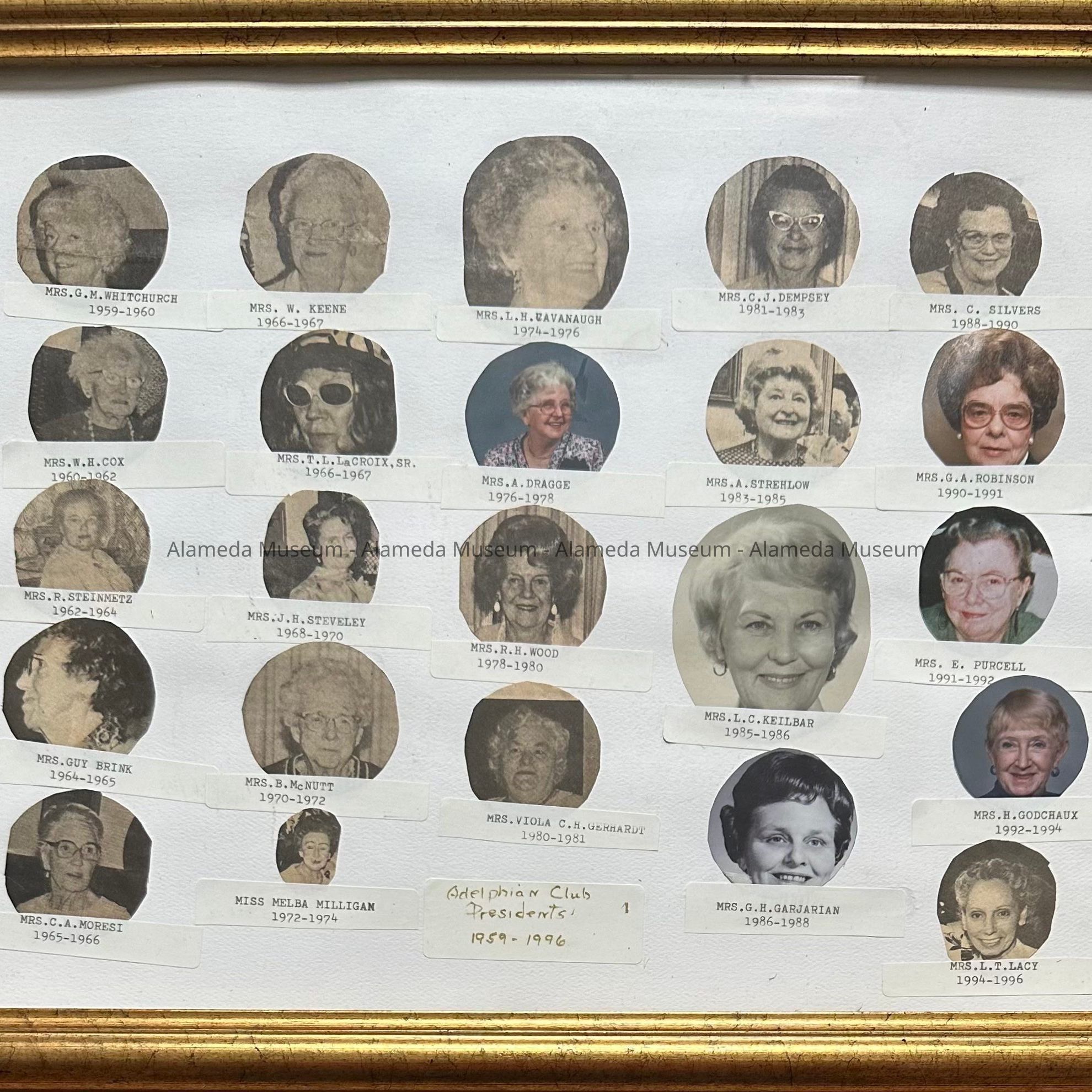 CHRONOLOGICAL IMAGES AND DATES OF TERMS, ( PRESIDENTS), ADELPHIAN CLUB, 1959-1996.