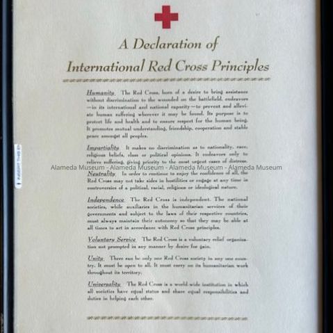 History of Object: A framed "Declaration of Principles of the International Red Cross.”