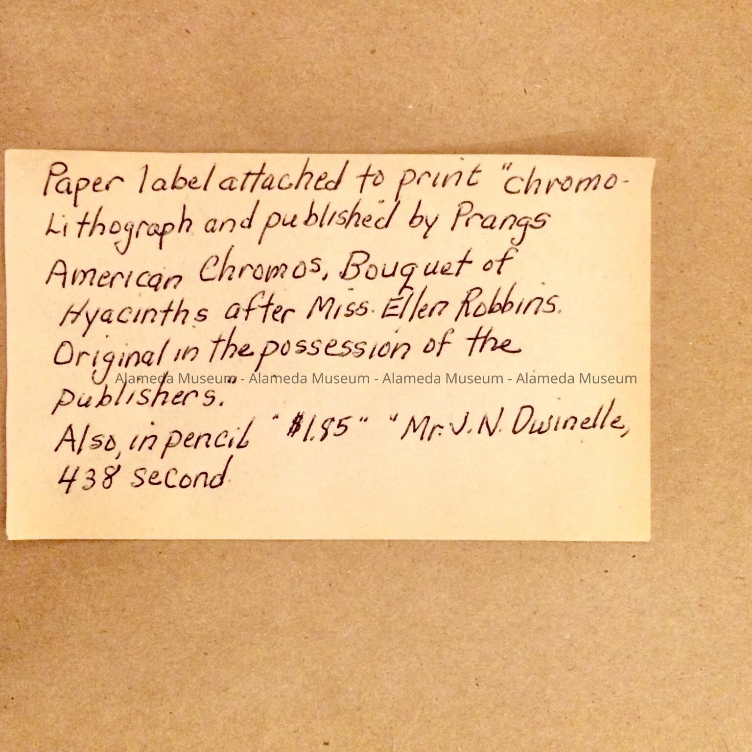 History of Object: A framed chromolithograph that hung in the parlor of Caroline Chipman Dwinelle, at her residence on Weber Street (now demolished).