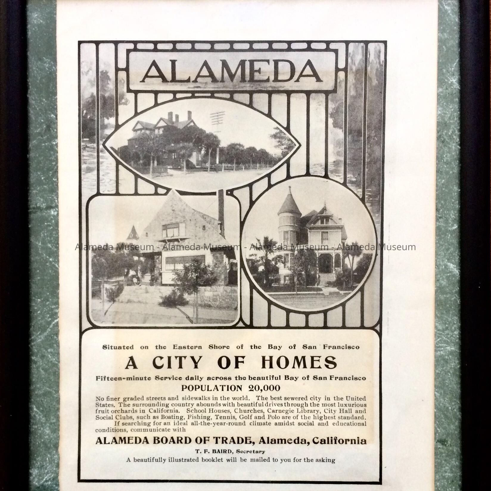 Framed magazine ad placed by the Alameda Board of Trade, c. early 1900sEntry/Object ID
