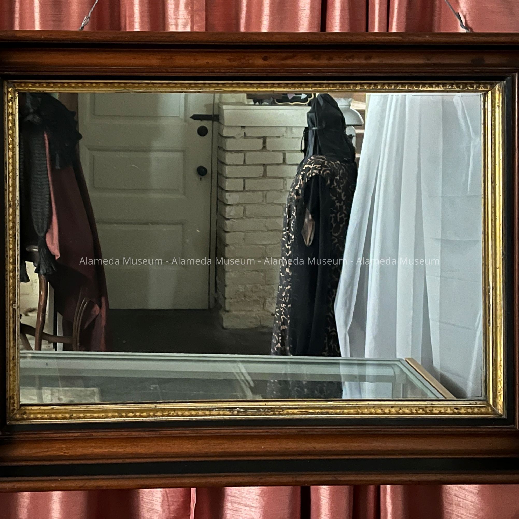 HISTORY OF OBJECT: A MIRROR FROM THE CHESTER GUTLEBEN RESIDENCE AT 1622 FERNSIDE BOULEVARD, ALAMEDA. MR. AND MRS. GUTLEBEN MOVED INTO THE HOUSE IN 1944 AND OCCUPIED IT UNTIL AUGUST 19, 2004. THE GUTLEBEN FAMILY DATES BACK 100 YEARS IN ALAMEDA HISTORY. THE RESIDENCE WAS FORMERLY OWNED BY HIS UNCLE WHO HAD MOVED TO THE SITE IN 1914. THE HOME WAS LATER PURCHASED BY HIS PARENTS.