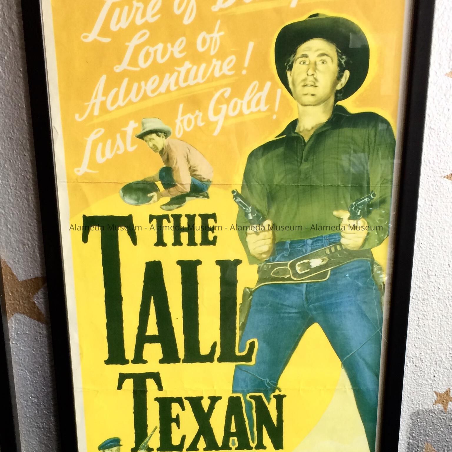 Description: Advertising Poster for movie "The Tall Texan", 1953, behind glass in plain black frame. A plate in the lower left corner states "1953".