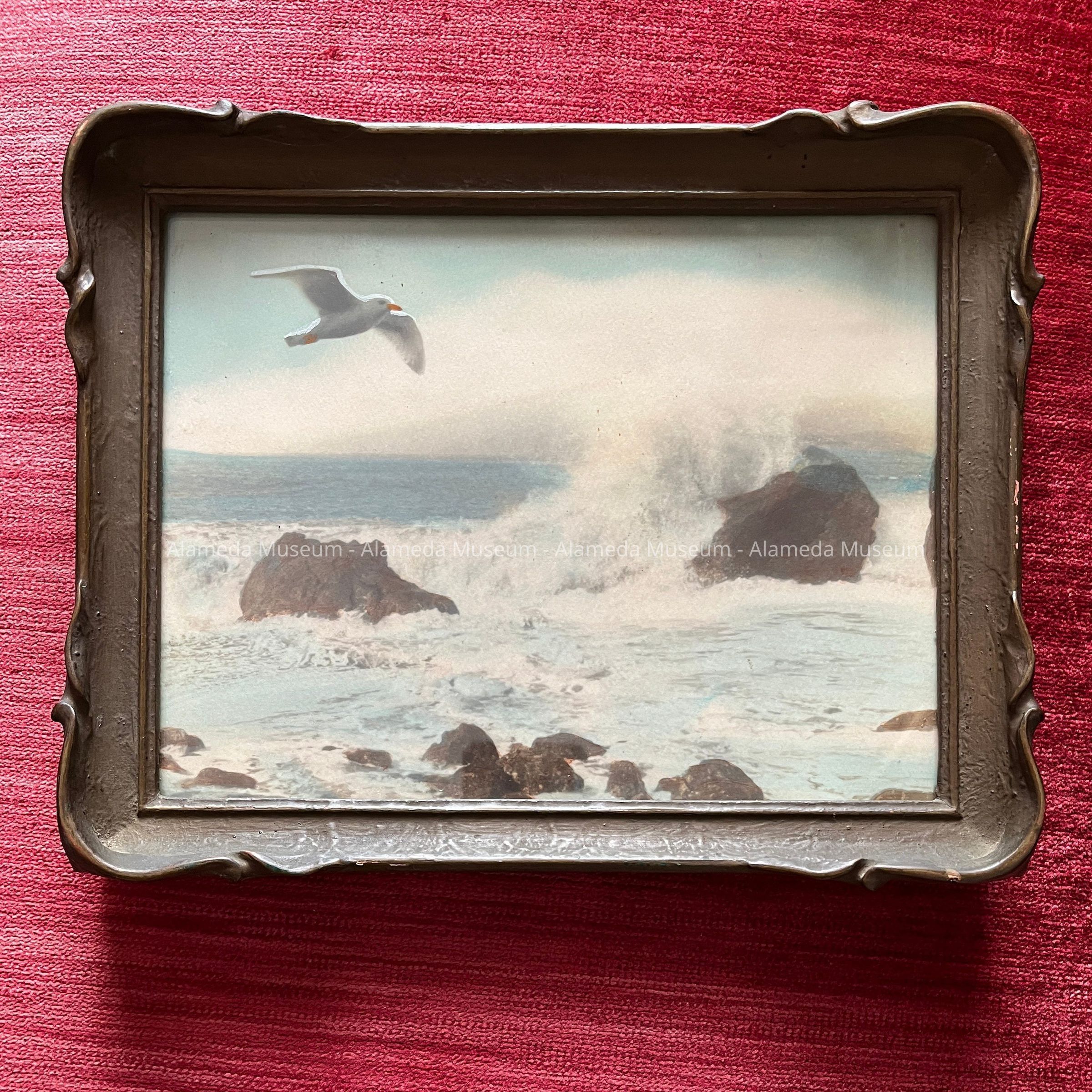 Framed photo of an ocean scene with seagull, c. 1920Entry/Object ID
