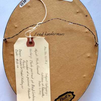 HISTORY OF OBJECT: PHOTOGRAPH OF THE LATE FRED LINDERMAN, FATHER OF MABEL KOLLMYER, WHO MARRIED MARY FRANCES THORNTON IN 1895. MR LINDERMAN WAS A PIONEER RESIDENT OF THE CITY, AND WAS THE HEAD ENGINEER FOR THE ARTESIAN WATER COMPANY ON THOMPSON AVENUE, ALAMEDA. FRED WAS AN ENTREPRENEUR.