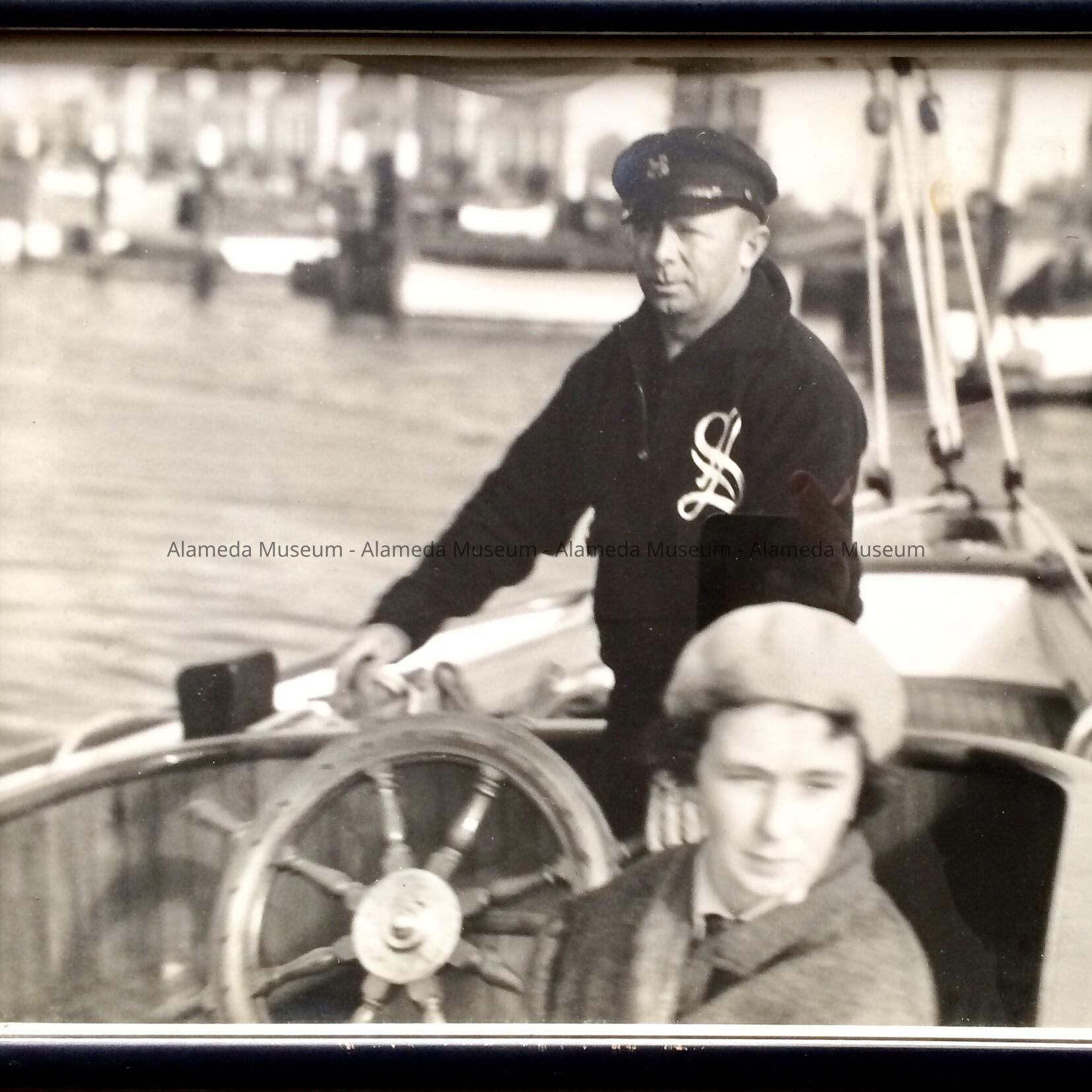 History of Object: photo of Lester and Ethel Stone on a sailing yacht.