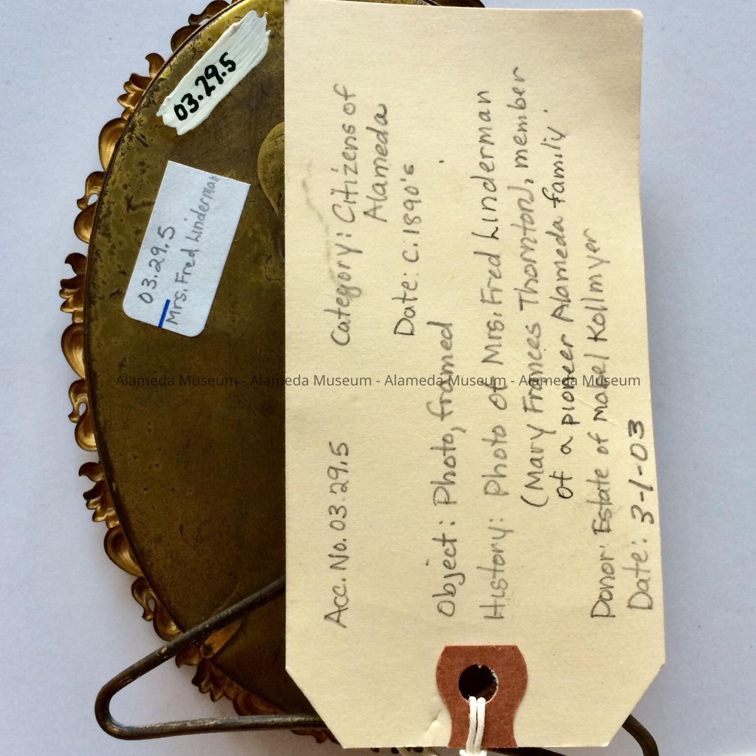 Framed photo portrait of Mary Frances Thornton Linderman, c. 1890sEntry/Object ID
