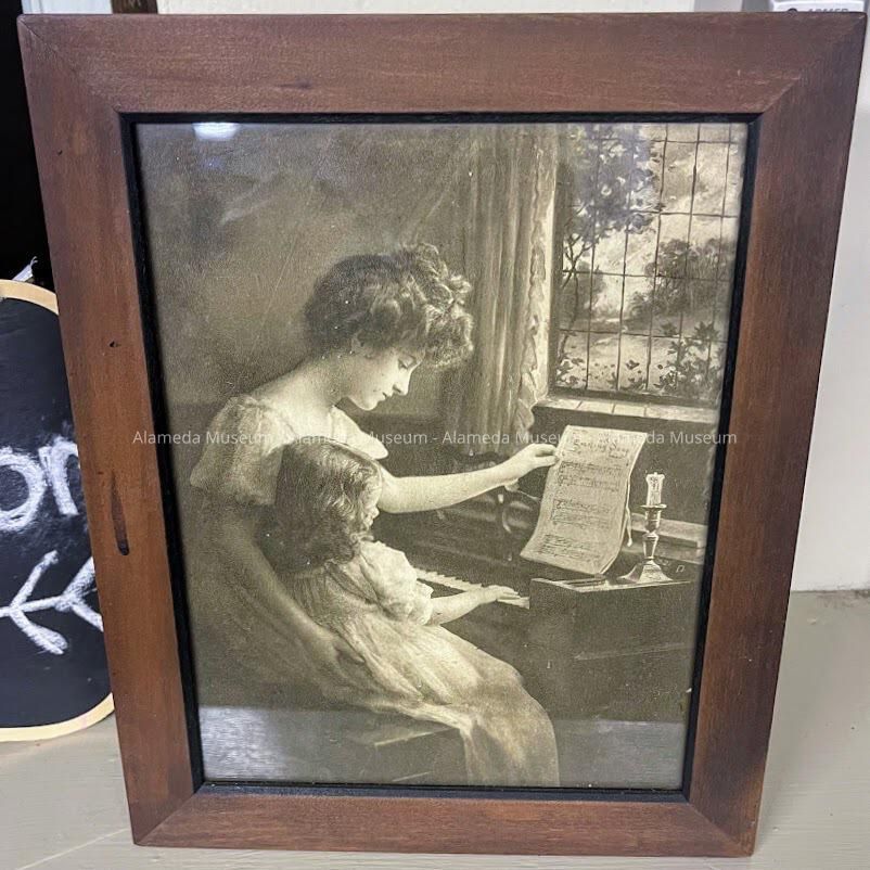 Framed photolithographic print of a woman and child at a piano, c. 1900Entry/Object ID