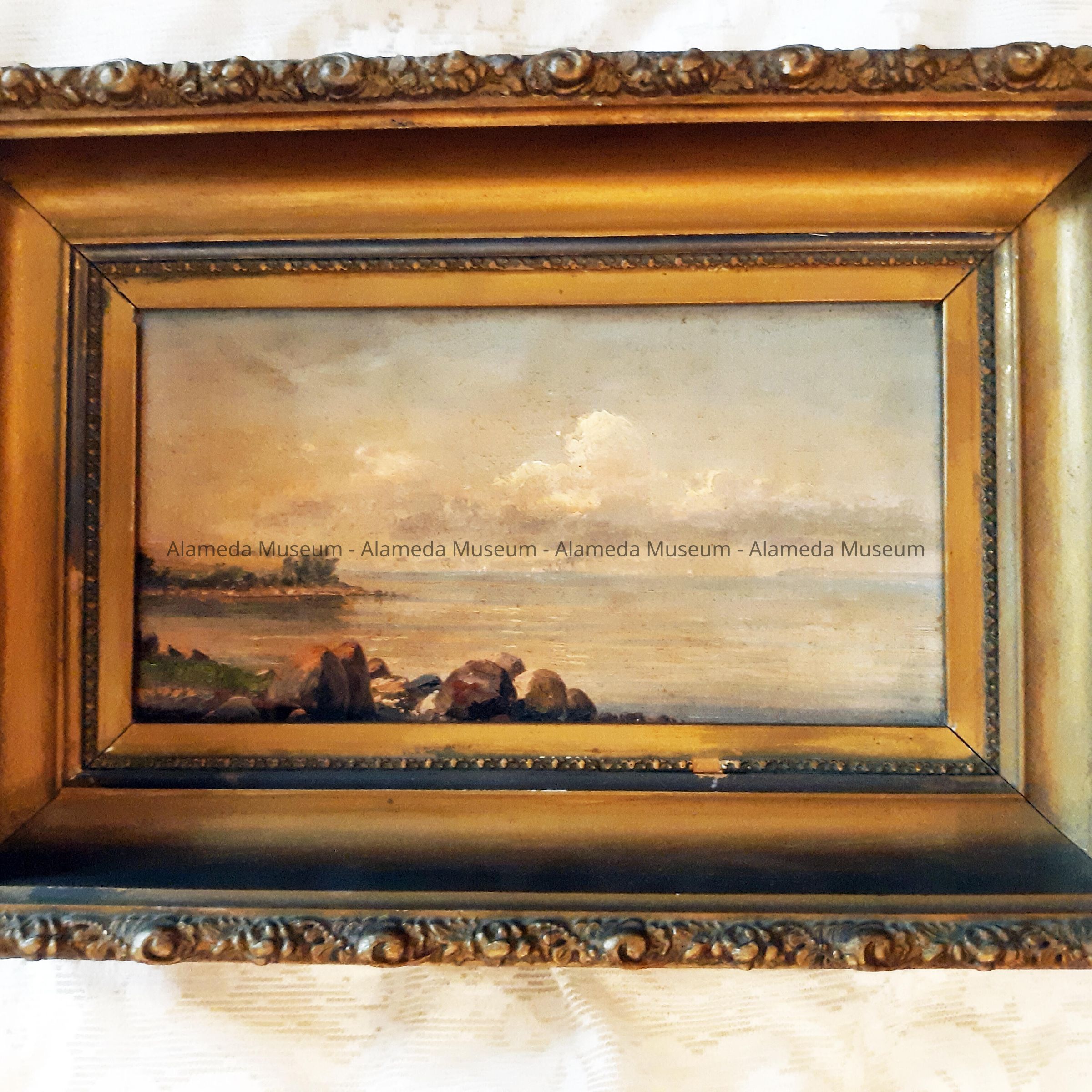 History of Object: A framed painting that belonged to Emma Young, born in 1893 who came to Alameda in 1915 and resided at 2137 San Jose Avenue.
