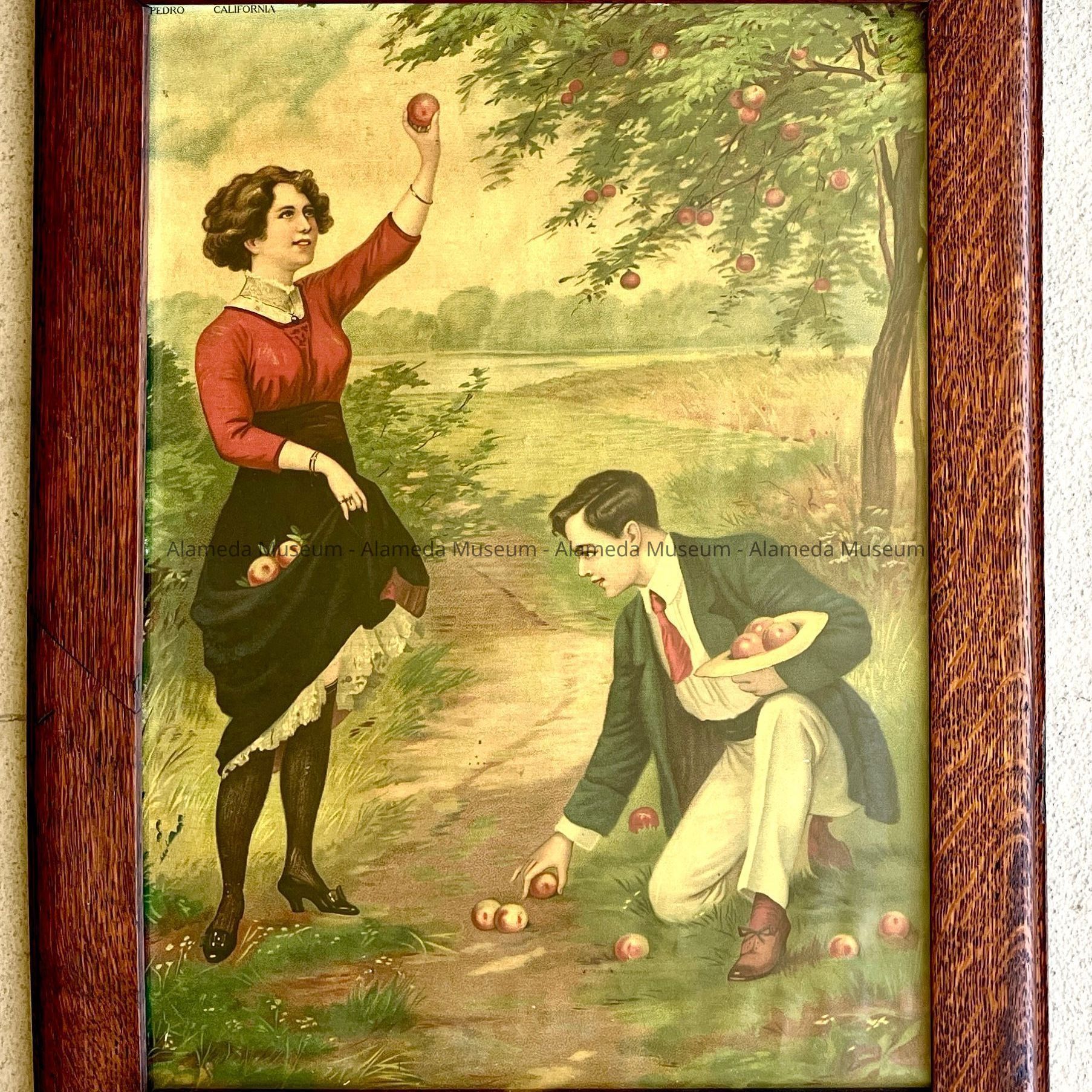 Framed print of a couple picking peaches, c. 1915Entry/Object ID