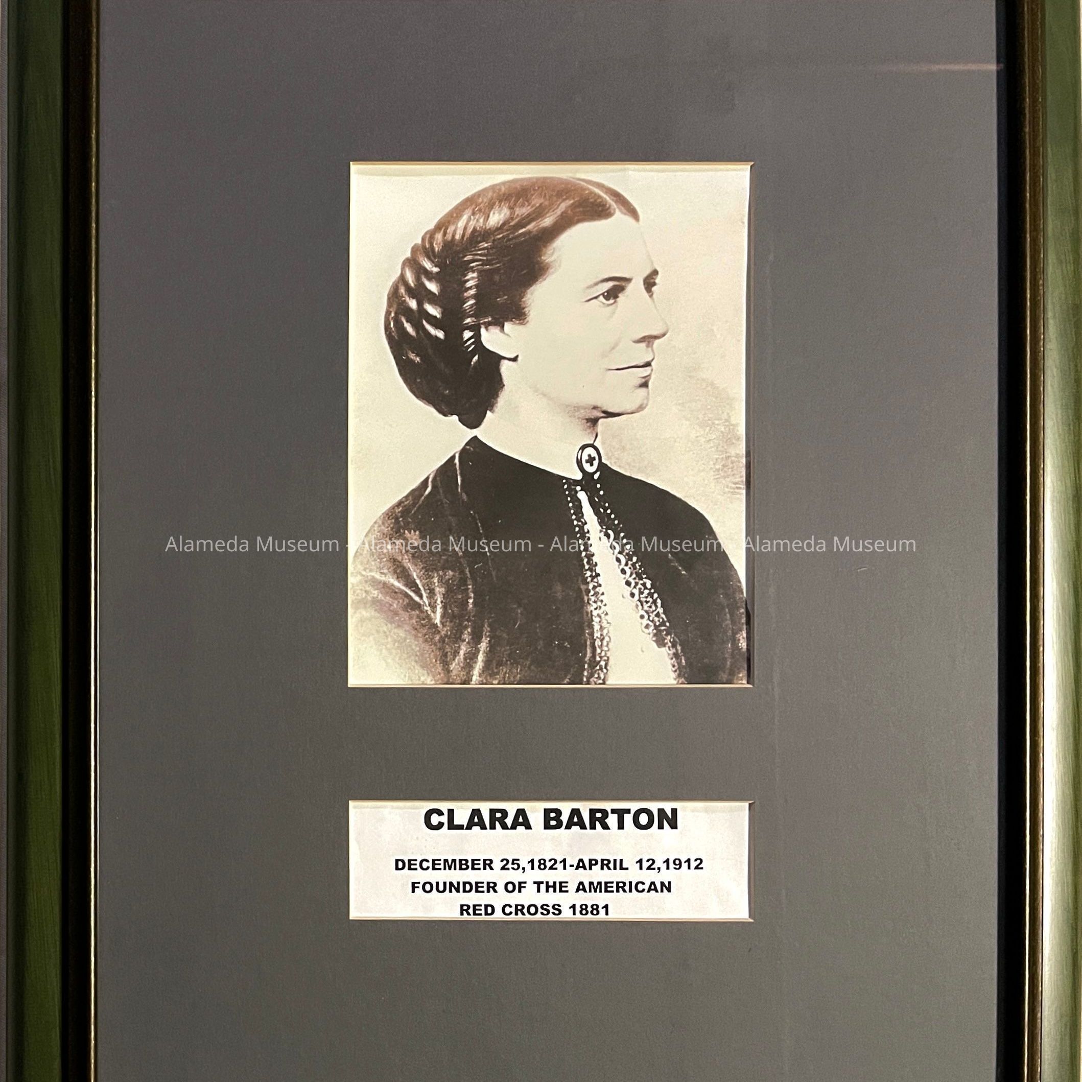 History of Object: A framed reproduction photo portrait of Clara Barton, (1821-1912) founder of the American Red Cross.