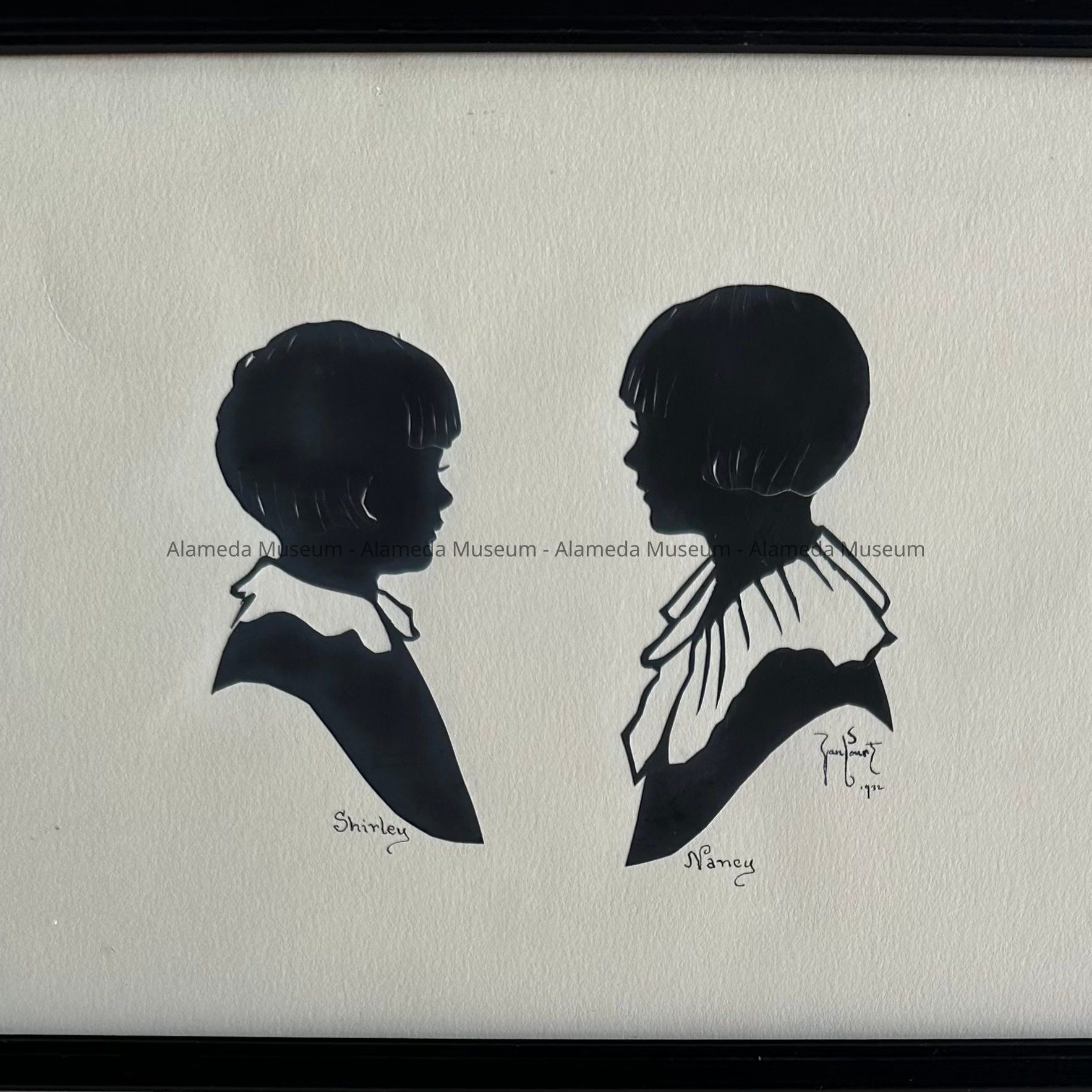 Framed silhouettes of Shirley and Nancy Martin, 1932Entry/Object ID
