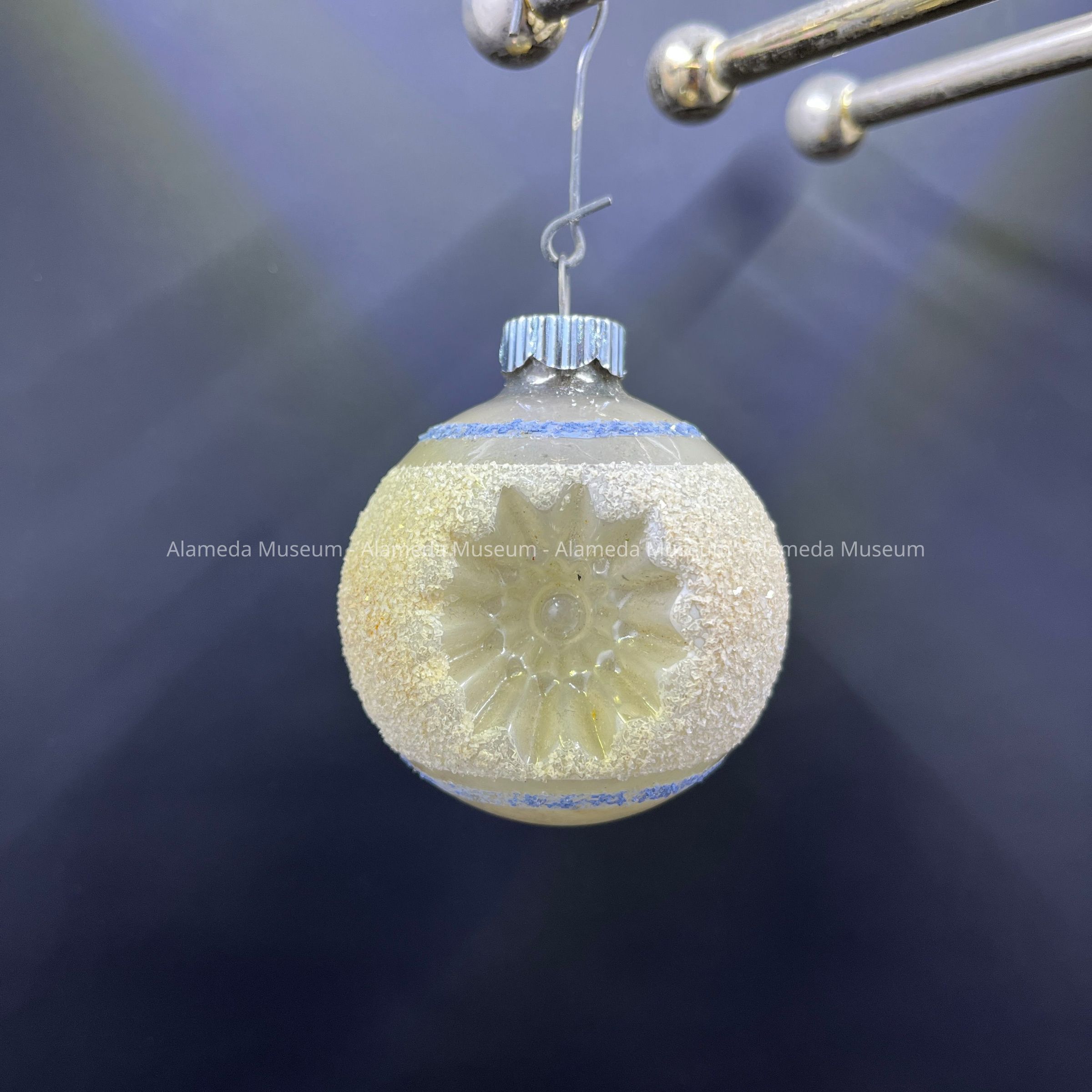 Frosted Double-Indent with Blue Frosted Lines Christmas Ornament, 1950sEntry/Object ID