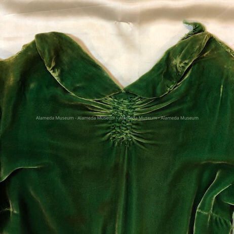 Gown worn by Elizabeth Fields (Chita) on her graduation from Alameda High School. The Fields were neighbors of the Hamiltons, Weber Street, Alameda. It was made by her mother,