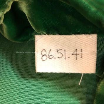 Full length green velvet open-back gown, c. 1930sEntry/Object ID