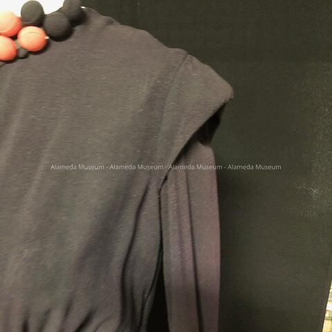 DRESS WAS WORN BY DOROTHY F CLAZIE, BORN APRIL 12, 1914; DIED MAY 29, 2010 AT THE AGE OF 96. SHE HAD LIVED AT 2824 FERNSIDE BLVD, ALAMEDA, FOR 50 YEARS. HER HUSBAND, GEORGE C CLAZIE, OWNED THE ENCINAL HARDWARE DURING THE 1950'S AND 1960'S, AND WAS PRESIDENT OF THE ALAMEDA LIONS CLUB AT ONE TIME.