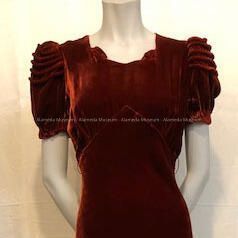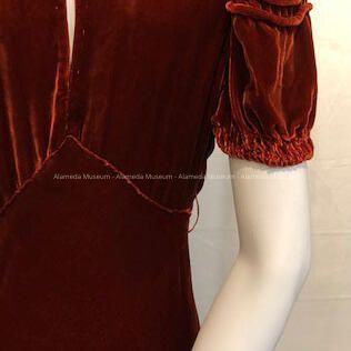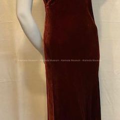 Full-length rust colored silk velvet dress, c. late 1930sEntry/Object ID