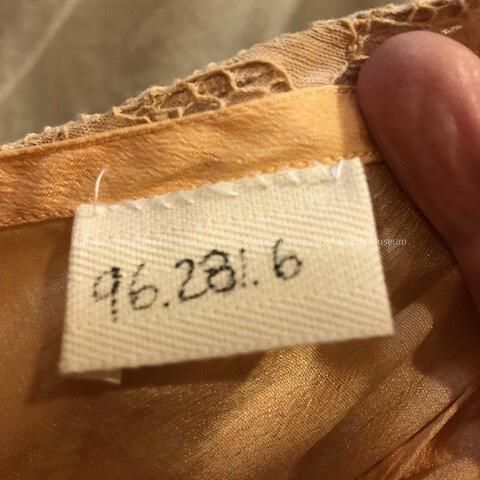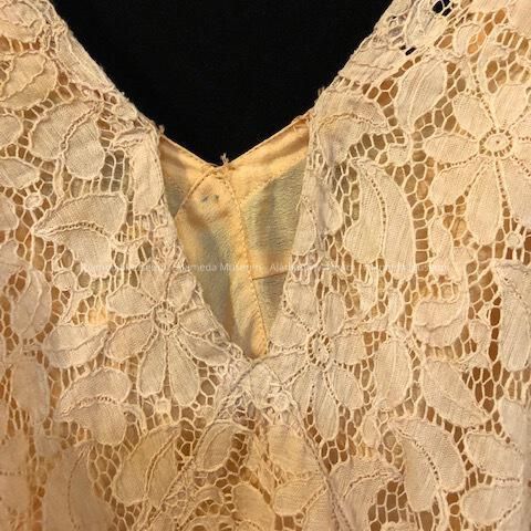 Full-length sleeveless peach lace dress of Vera George Knox, c. early 1930sEntry/Object ID