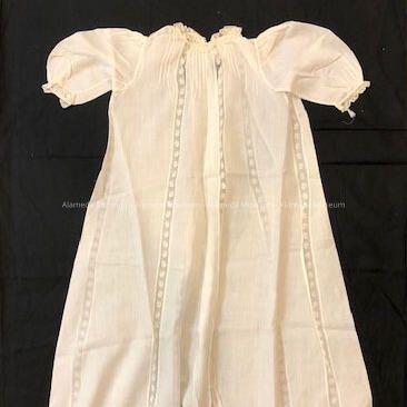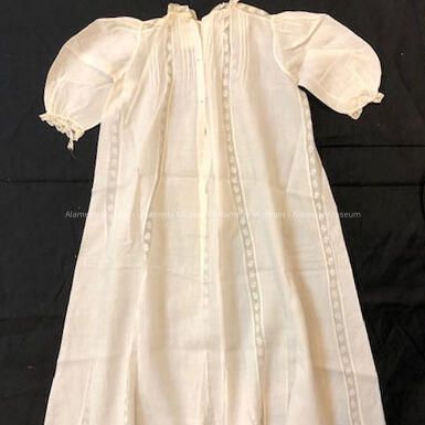 Full length white cotton baby dress with machine lace inserts, c. 1900Entry/Object ID