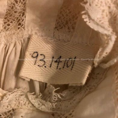 Full length white cotton high waisted baby dress with lace, late 1890sEntry/Object ID
