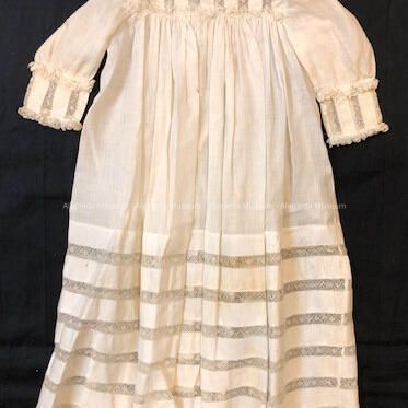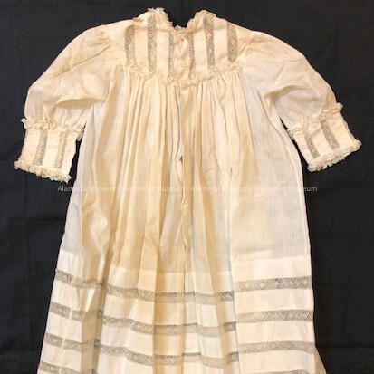 History of Object: A one year old size baby dress worn by Adeline Toye Cox, born 1895, and her brother Wilber. Probably worn in 1896.