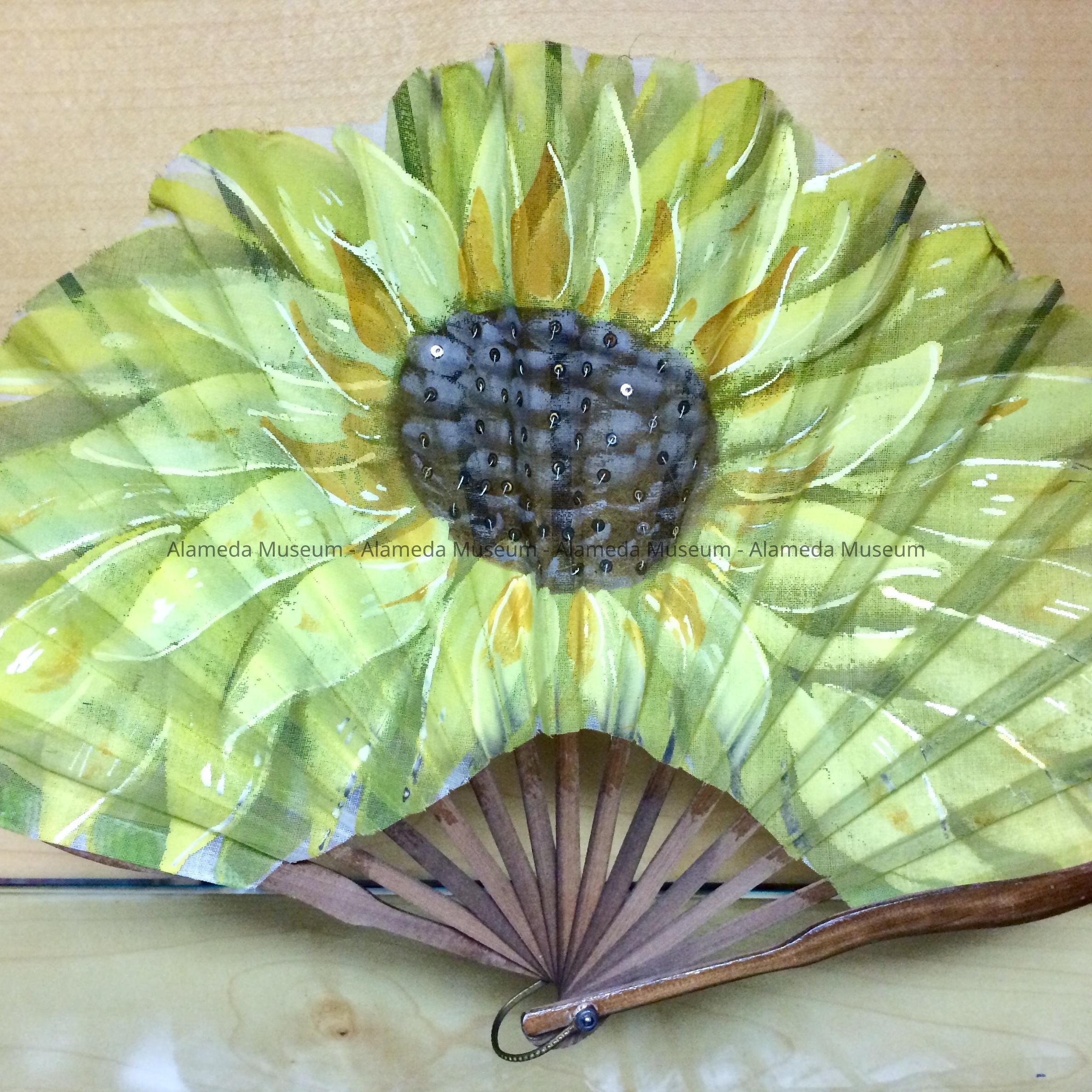 Gauze covered fan with hand-painted large sunflower, early 1900sEntry/Object ID