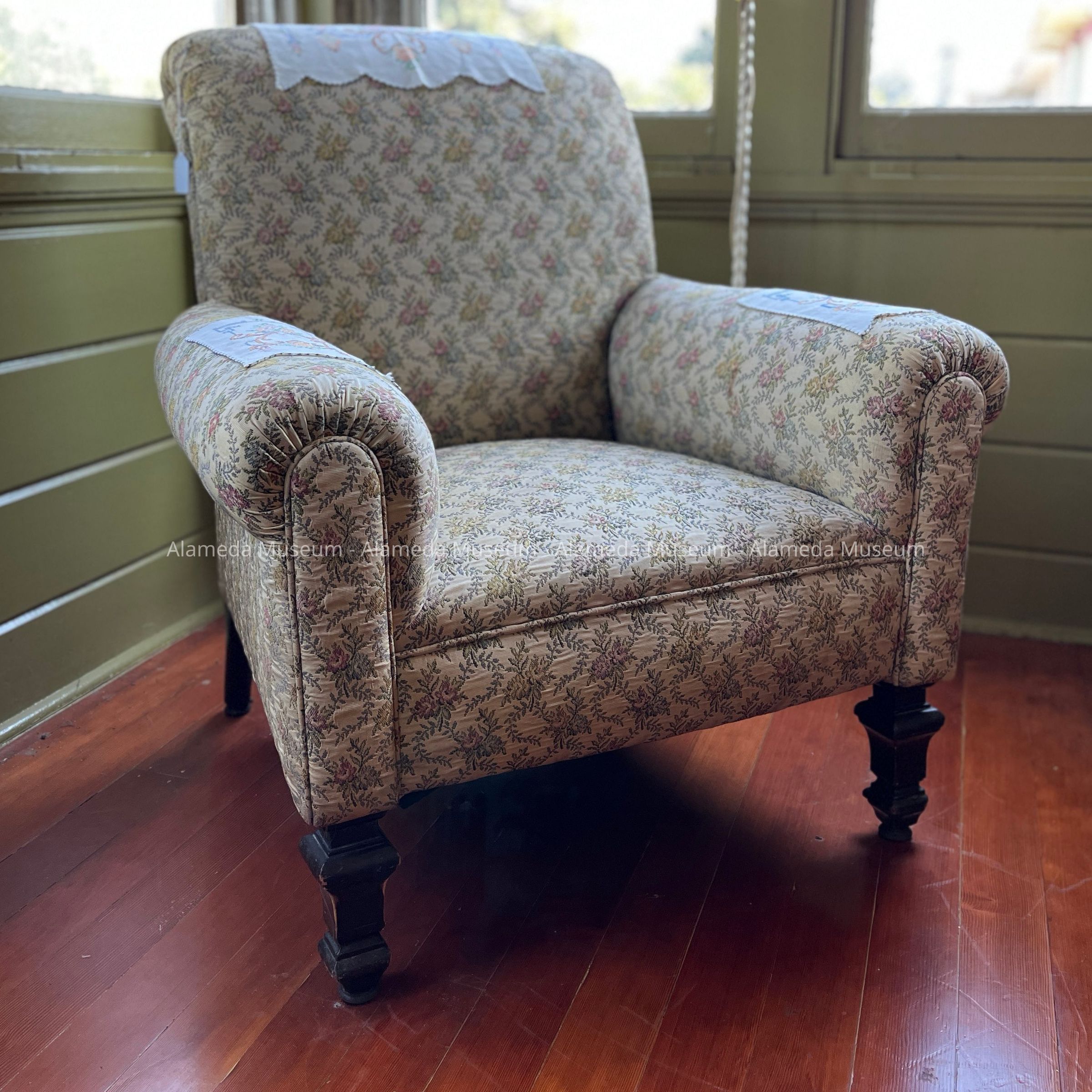 Gentleman's Armchair covered in a floral tapestry from the Peter White Mansion, c. 1890sEntry/Object ID