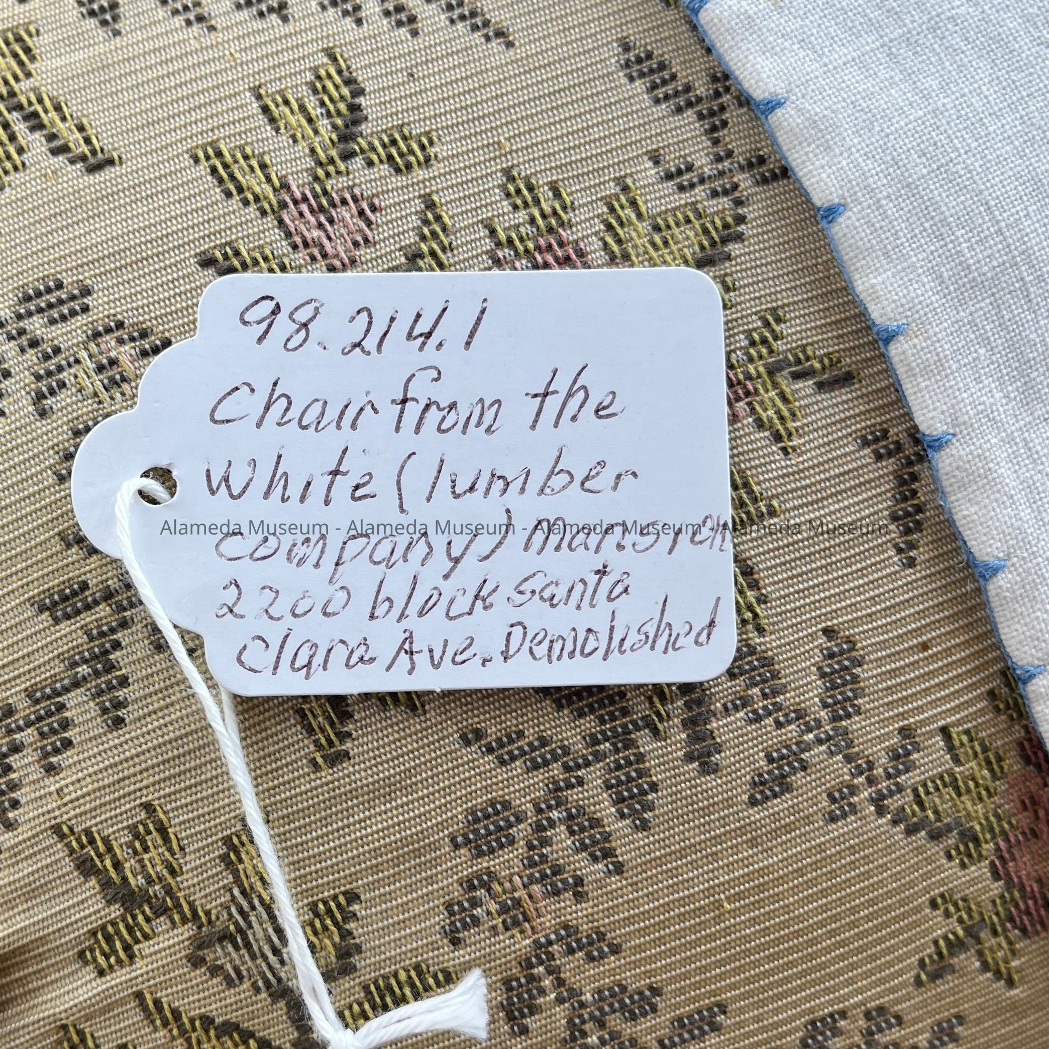 Chair from the White (Lumber Company) Mansion, 2200 Block Santa Clara Ave. Demolished.