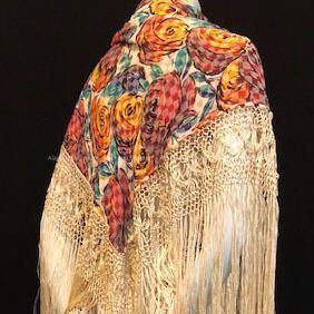 Georgette Shawl with yellow and red roses and fringe of Doris Goodman, c. 1930Entry/Object ID