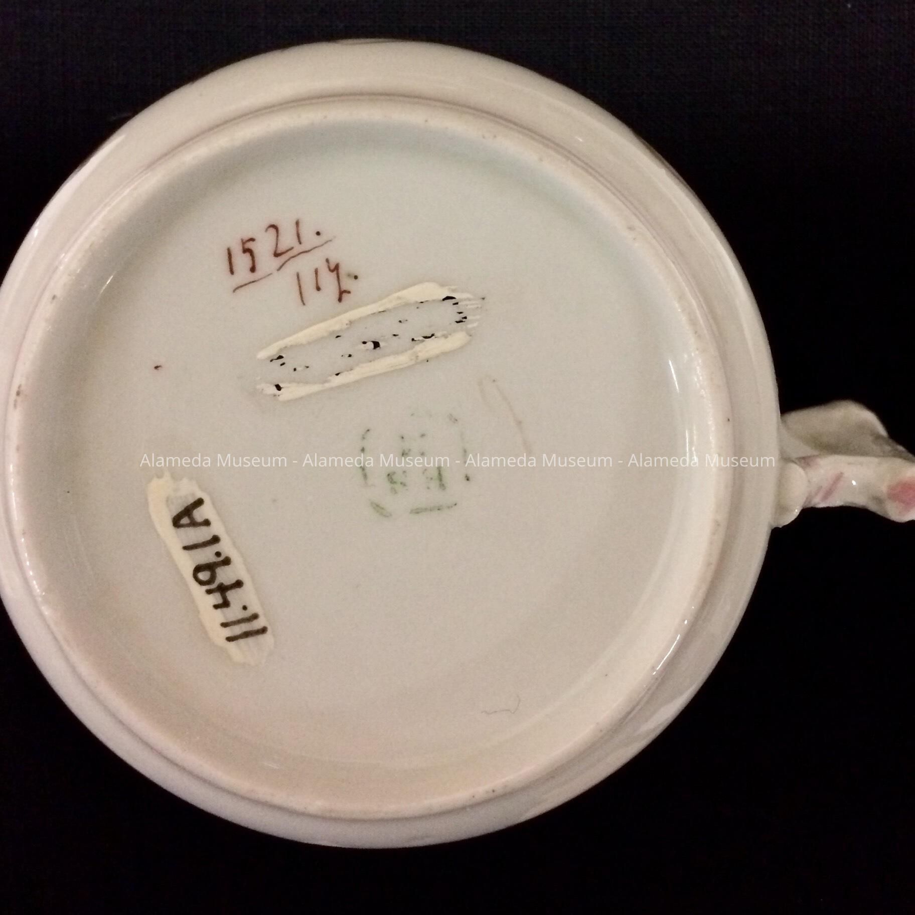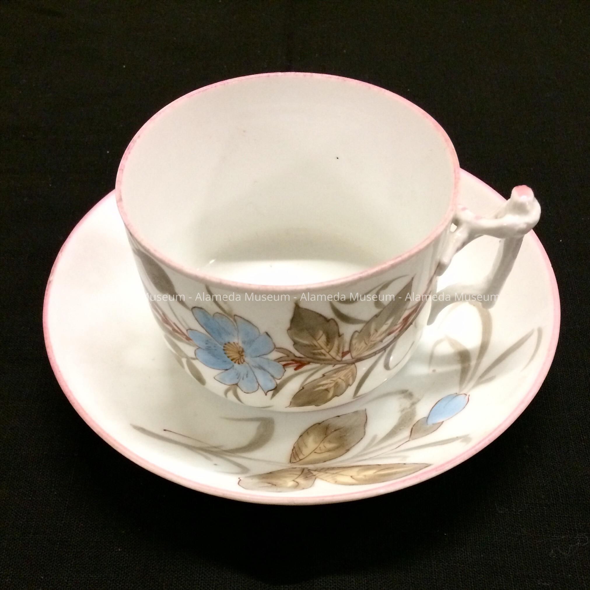 GENTLEMAN'S COFFEE CUP IN GERMAN PORCELAIN THAT BELONGED TO DR SHERMAN C BALDWIN AND FOUND IN HIS HOME AT 1125 MORTON STREET, ALAMEDA.