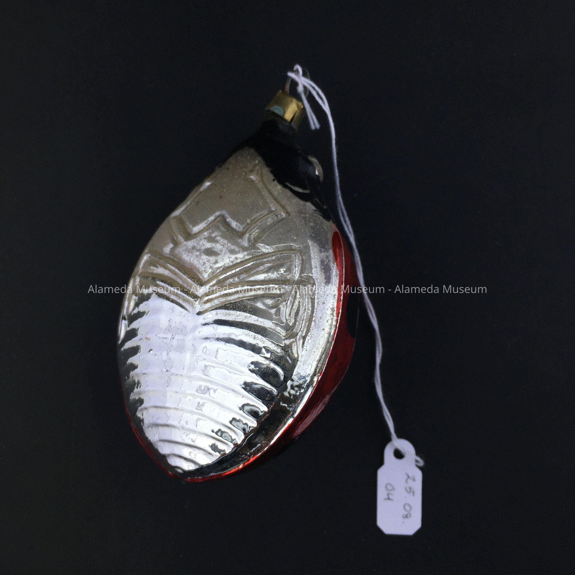 History of Object: Ornament of unknown origin, possibly donated by the Smith-Frye, or Fischer families, or Fred Krueger. Ornament was presumably to be placed onto a Christmas tree during the Christmas season.