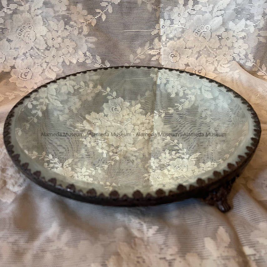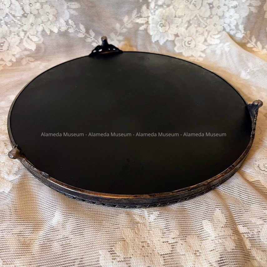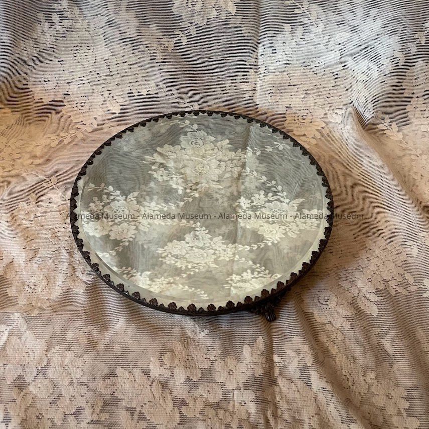History of Object: Mirror plateau from the dining room table of Myron Henry Fish, local builder (b. Alameda 1873 - d. Alameda 1929) and his wife Sarah Bridget (1873 to 1957).