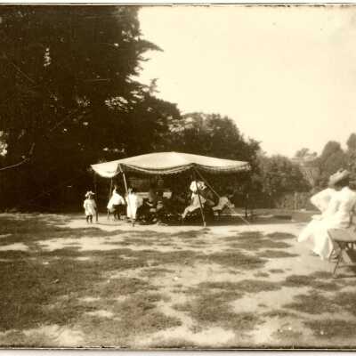 Glass negative and print, children under a tent, Lincoln Park, c. 1910Entry/Object ID