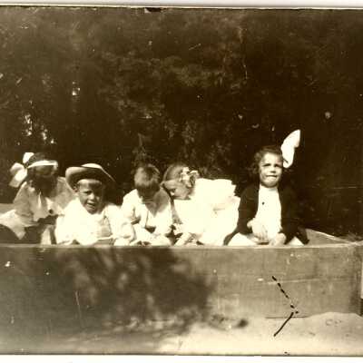 Glass negative and print of children in sandbox, Lincoln Park, c. 1910Entry/Object ID