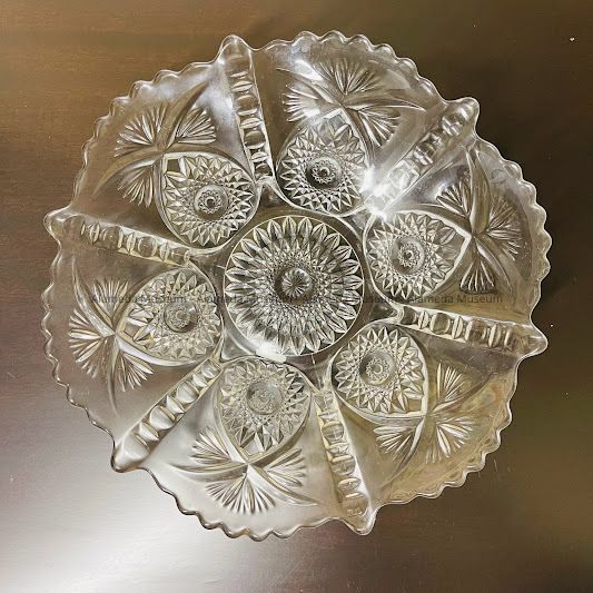 Inexpensive pressed glass plate (possibly originally a premium) that belonged to the Anderson family of Bay Street, old time residents of Alameda.