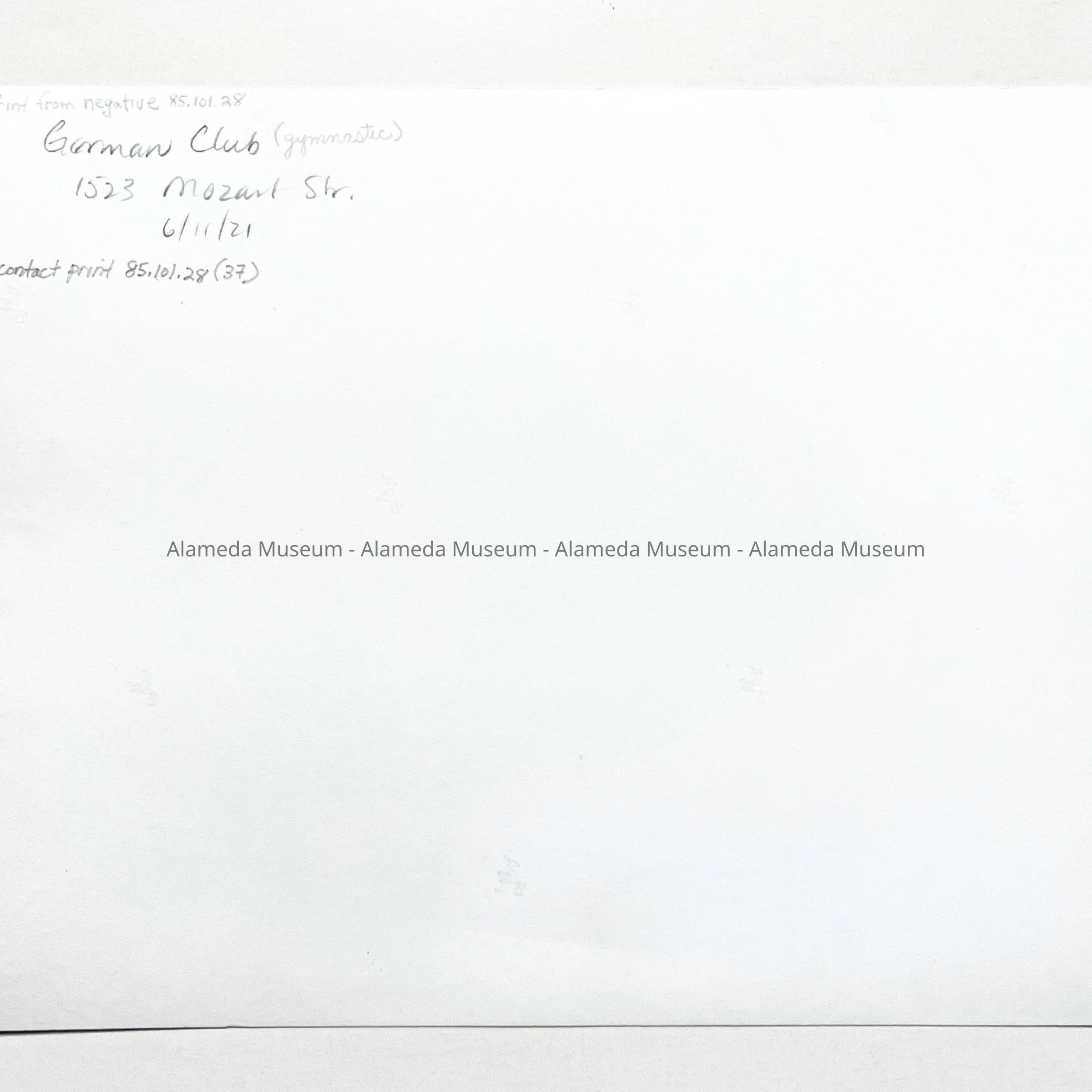 Glass plate negative of a German gymnastic club party, at 1523 Mozart Street, 1921Entry/Object ID