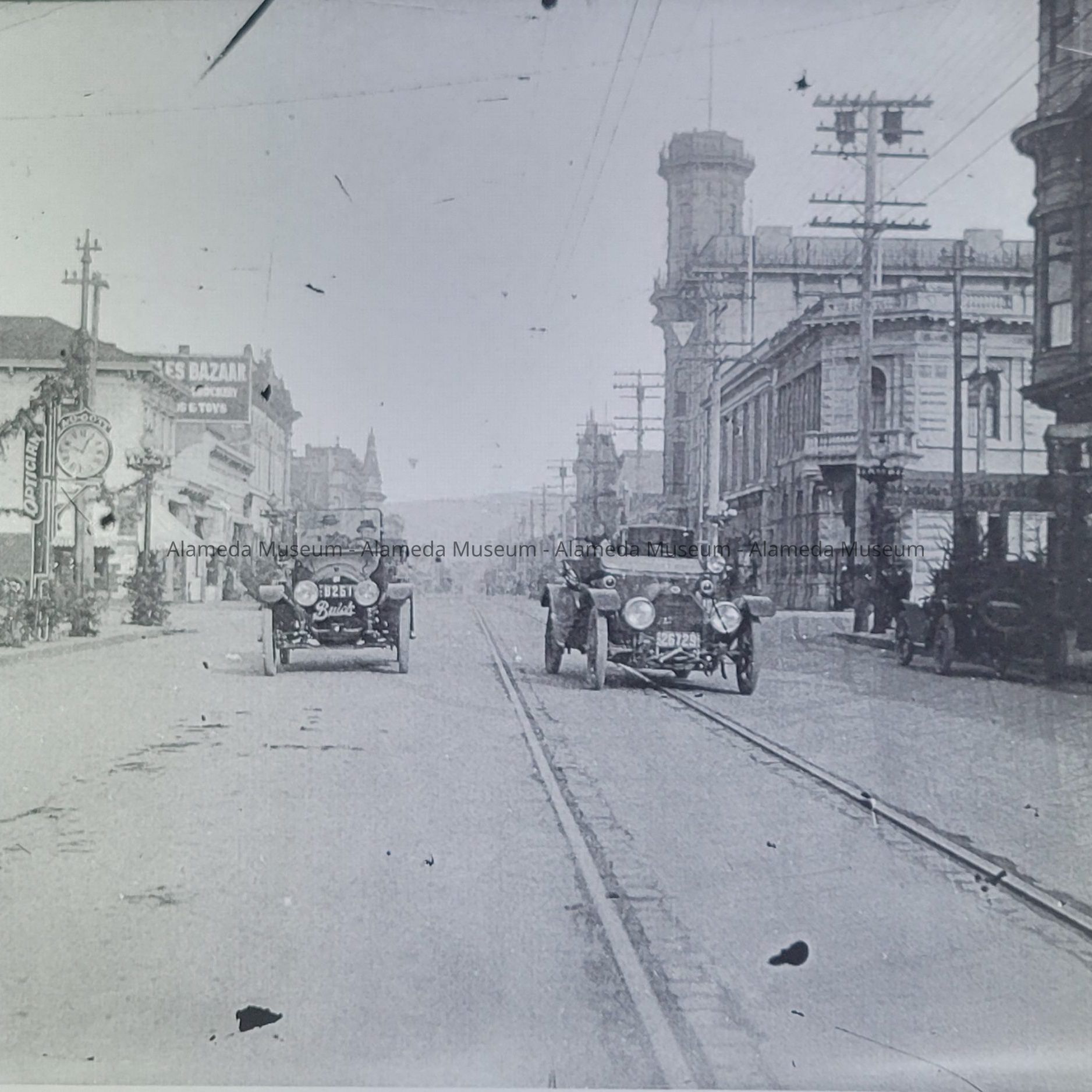 A glass plate negative of Park St. looking north, toward the intersection with Central Ave. The negative has minimal wear.