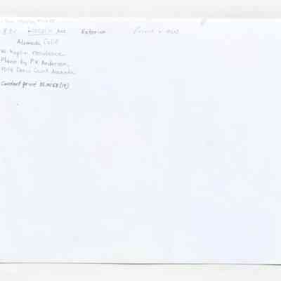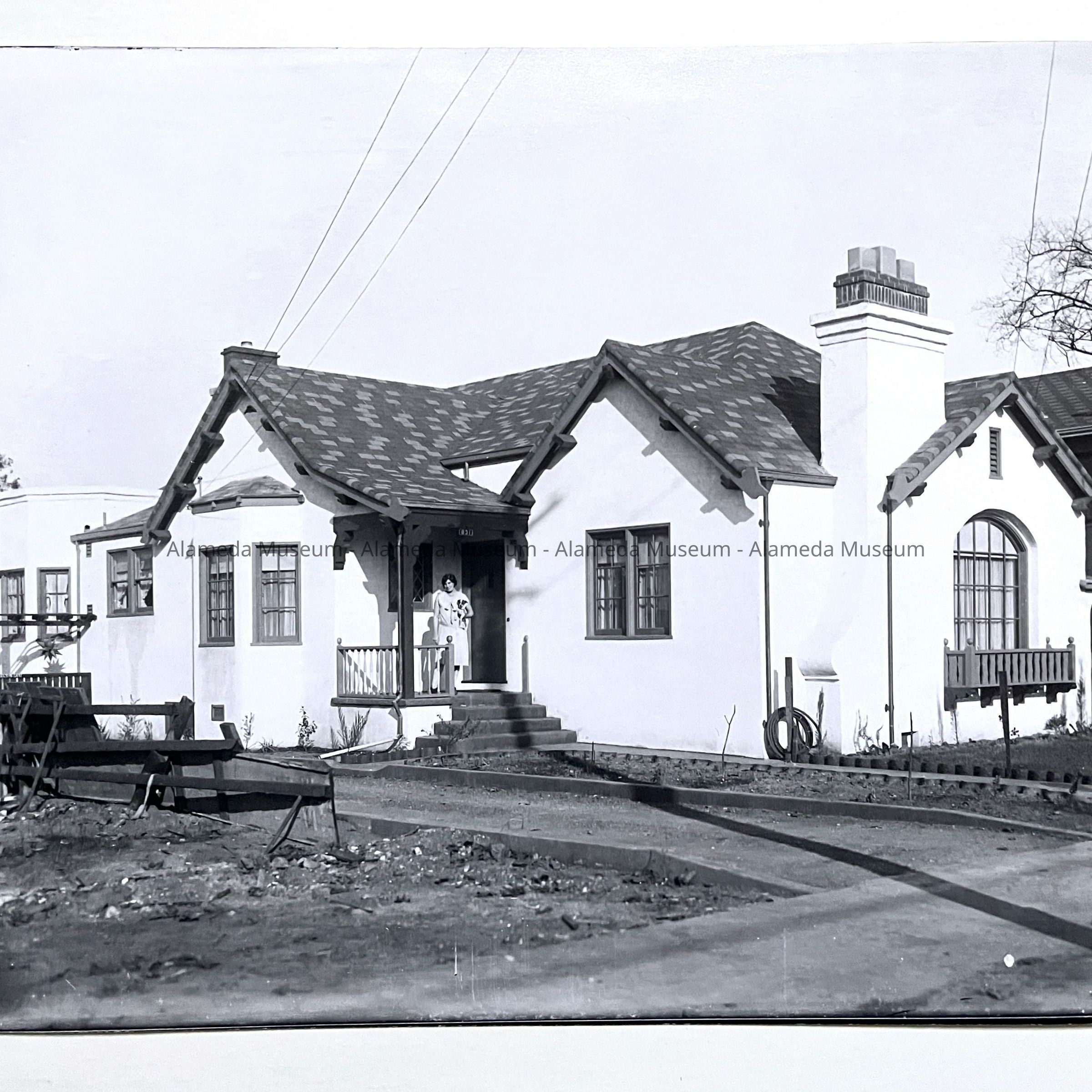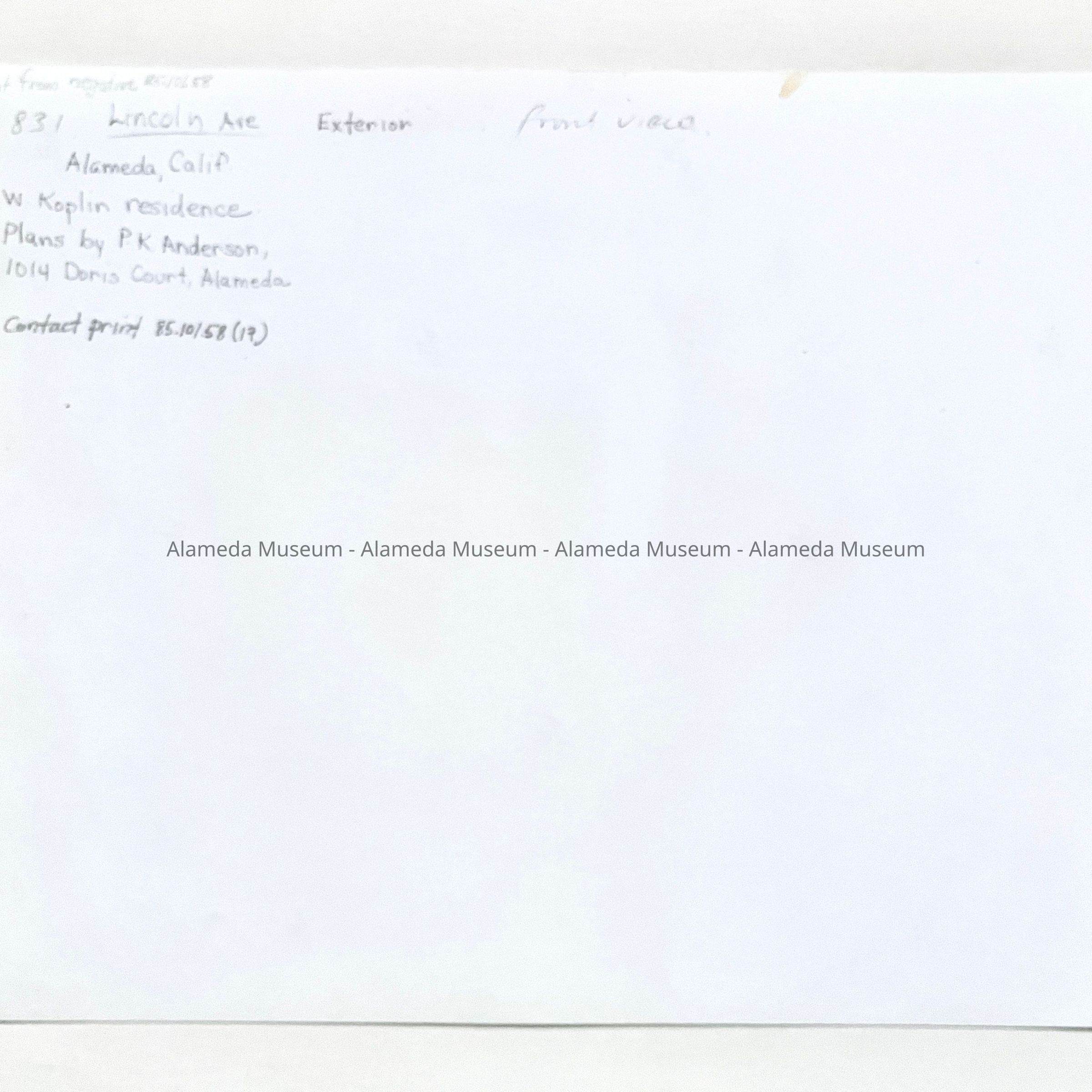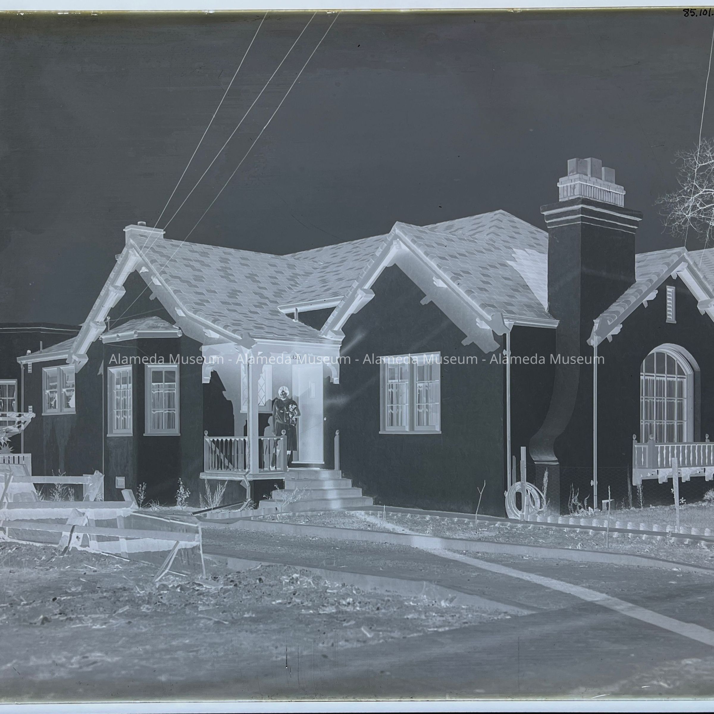 History of Object: Photo negative depicting the main facade of the W. Koplin residence, 831 Lincoln Avenue, Alameda. Plans by P. K. Anderson, 1014 Doris Court, Alameda. Photographed shortly after its completion.
