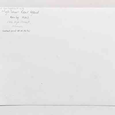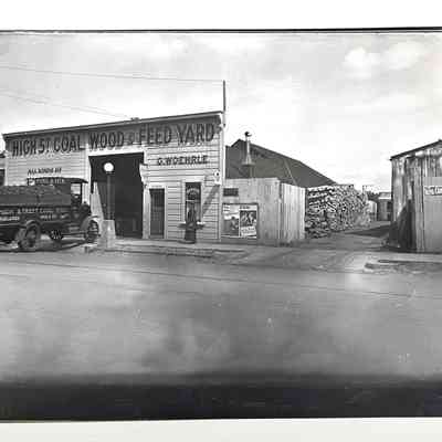 Glass plate photo negative exterior High Street Coal, Wood & Feed Yard, early 1920sEntry/Object ID