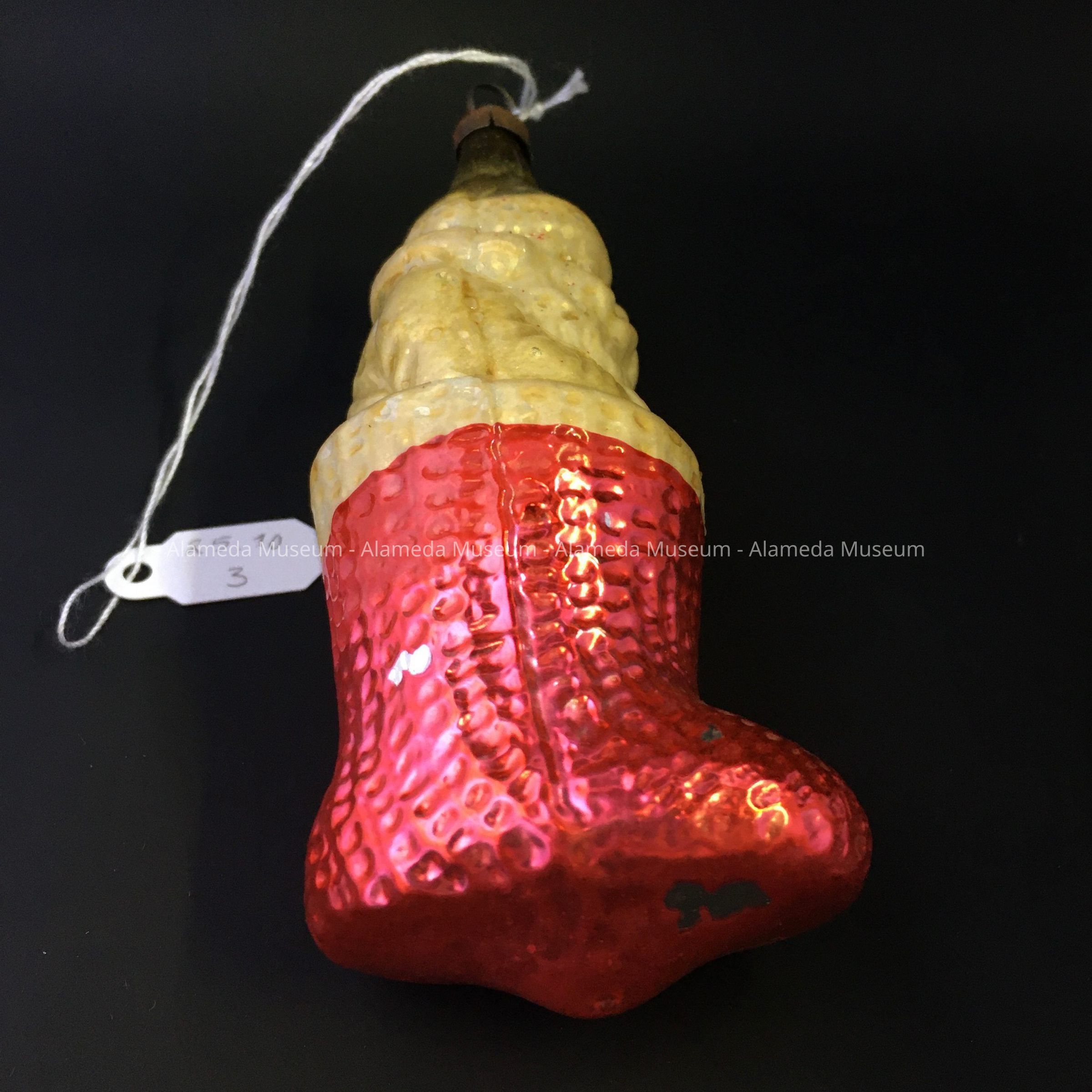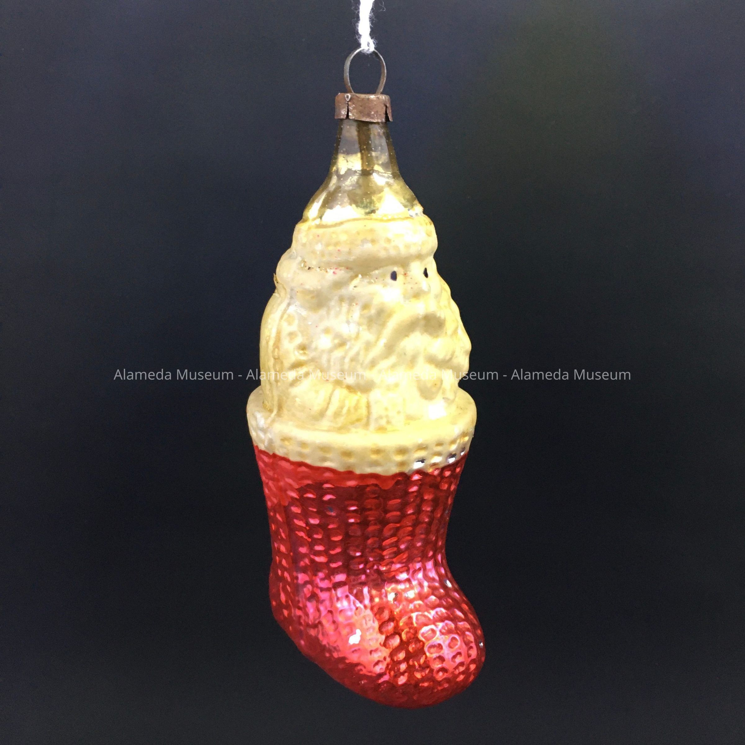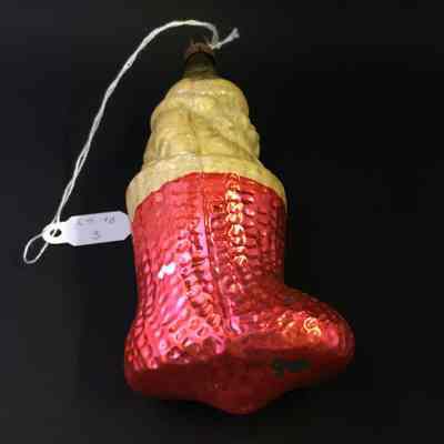 Glass Santa Claus in Stocking Christmas Ornament, 1930sEntry/Object ID