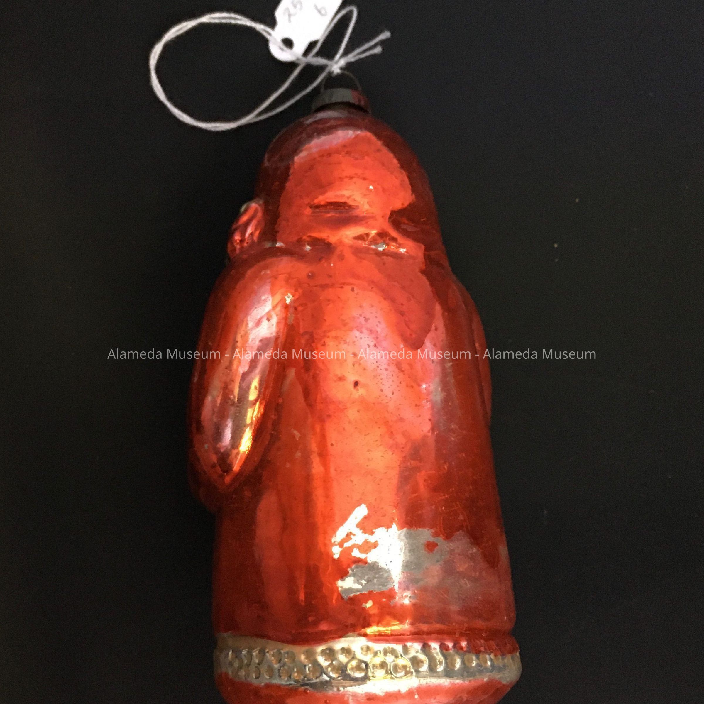 History of Object: Ornament of unknown origin, possibly donated by the Smith-Frye, or Fischer families, or Fred Krueger. Ornament was presumably to be placed onto a Christmas tree during the Christmas season.