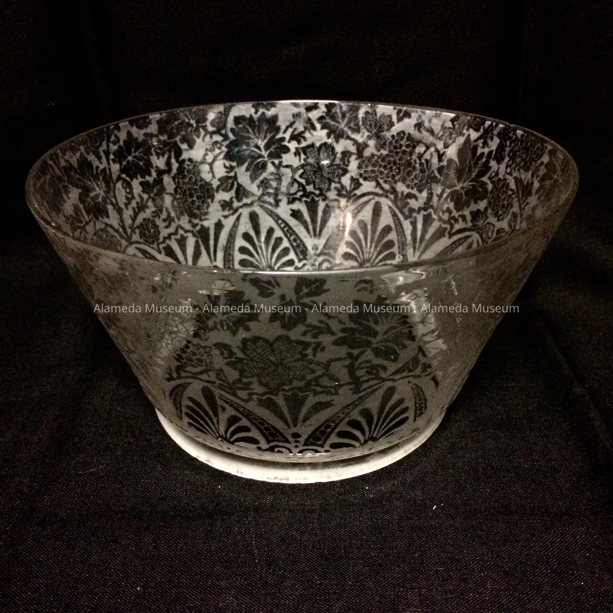 Size: 7½ inch across flaring rim and tapering to a base of 5 inches across. 4 inches high.