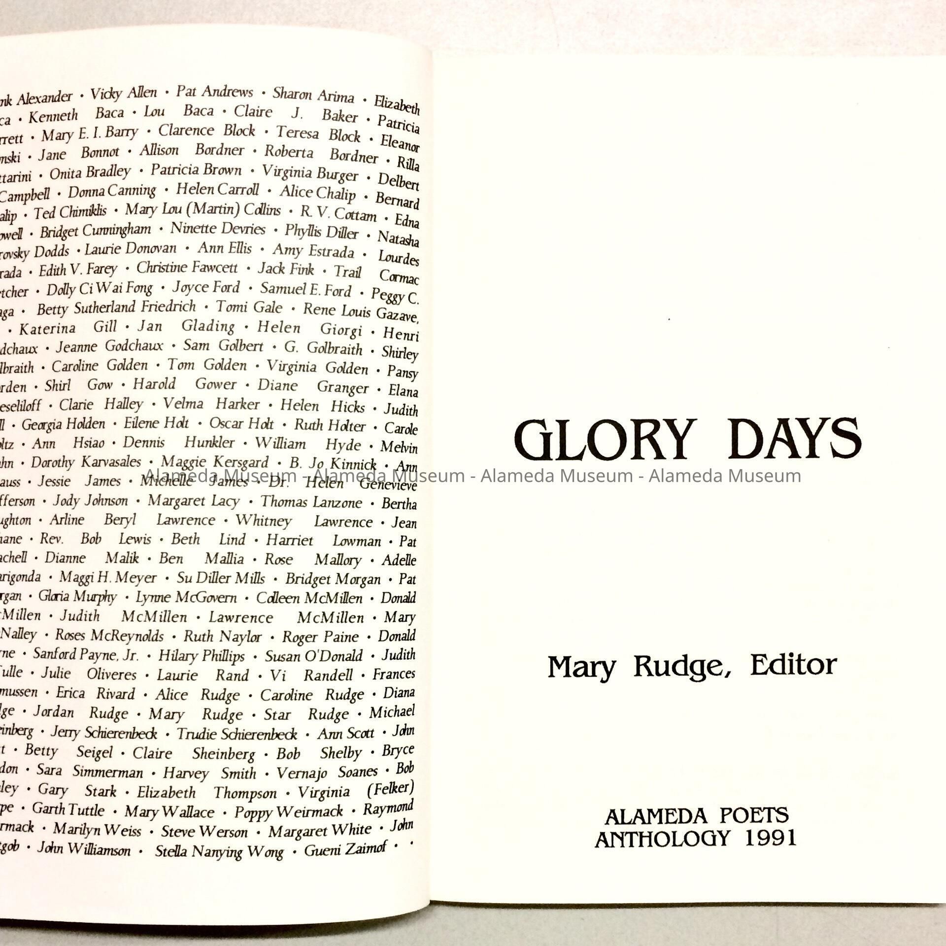 'Glory Days', 8th anthology issued by the Alameda Poets, 1991Entry/Object ID