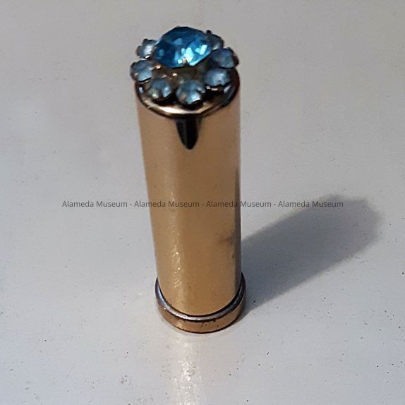 HISTORY OF OBJECT: A LIPSTICK CONTAINER USED BY ONE OF THE MEYERS' FEMALE MEMBERS.