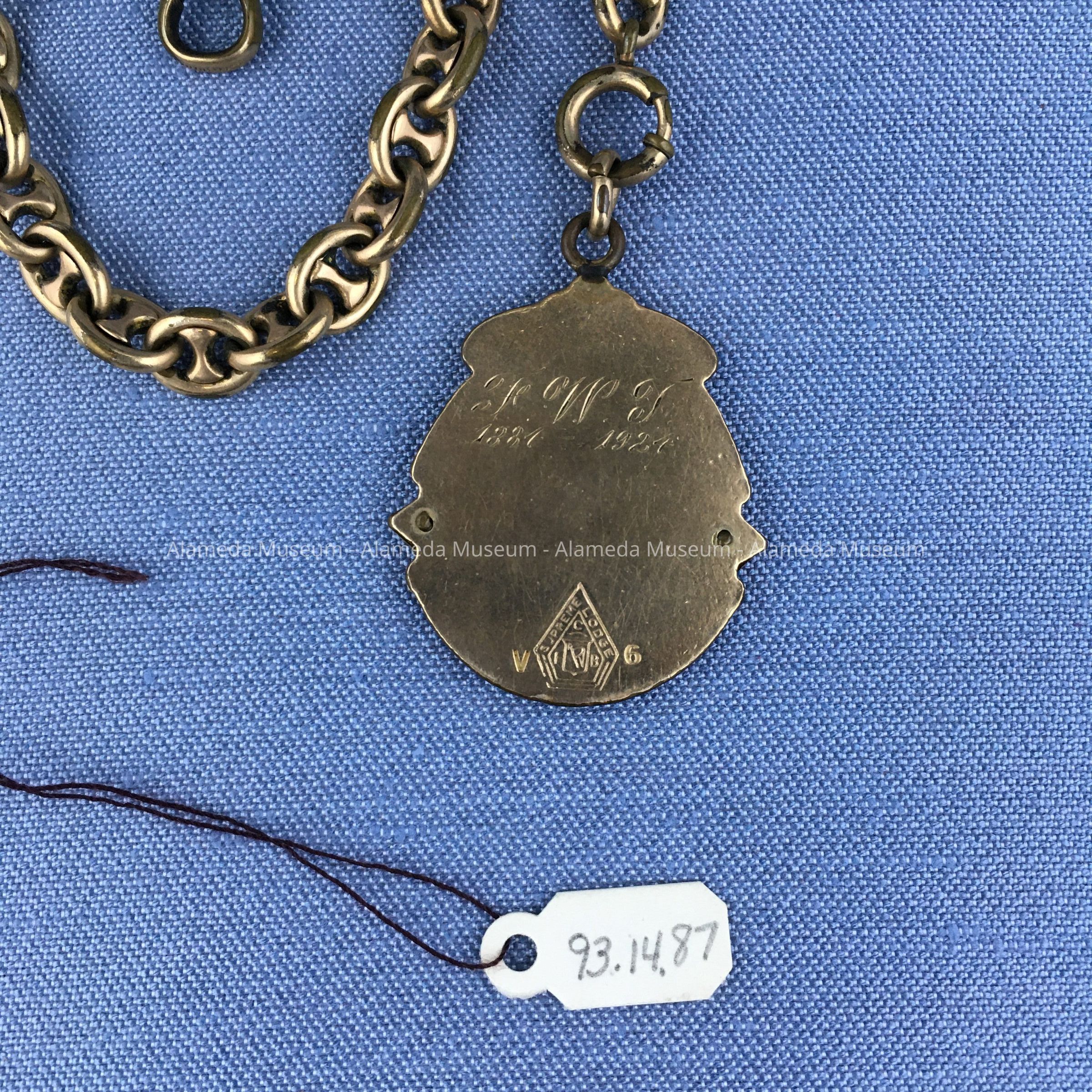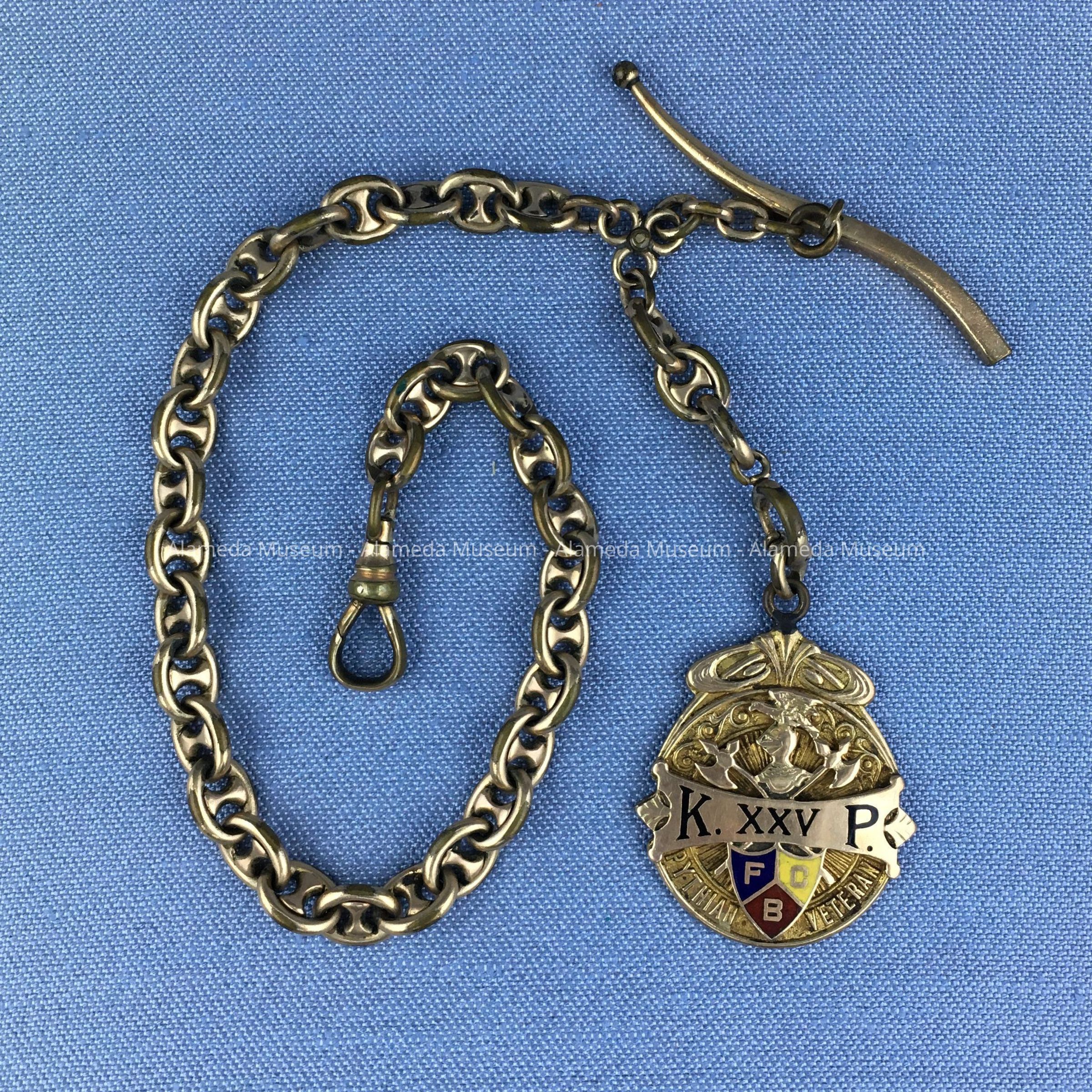 Gold plated Watch Chain and fob from the Knights of Phythias of F. W. Toye, c. 1924Entry/Object ID