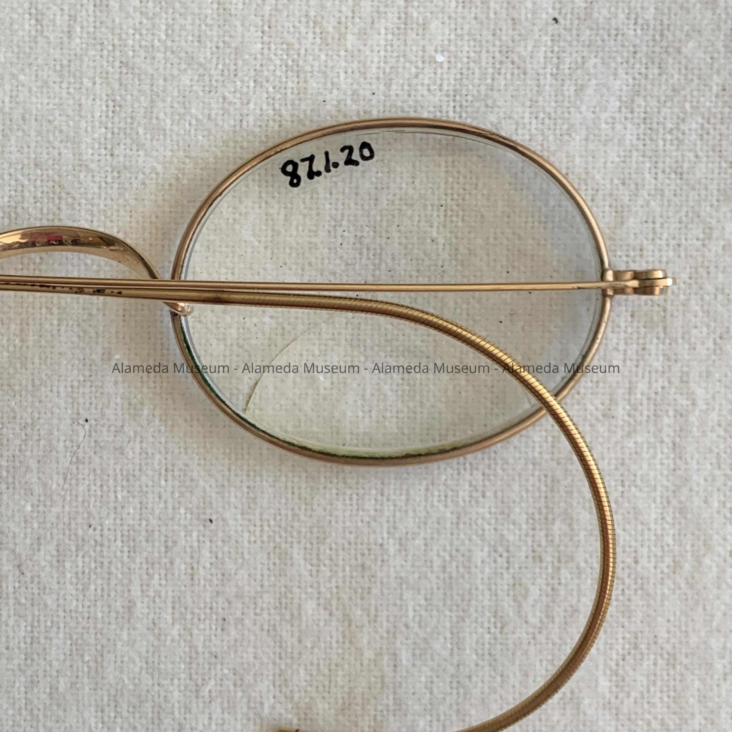 Eyeglasses belonging to an unidentified member of the H. H. Meyers family, old-time residents of Alameda.