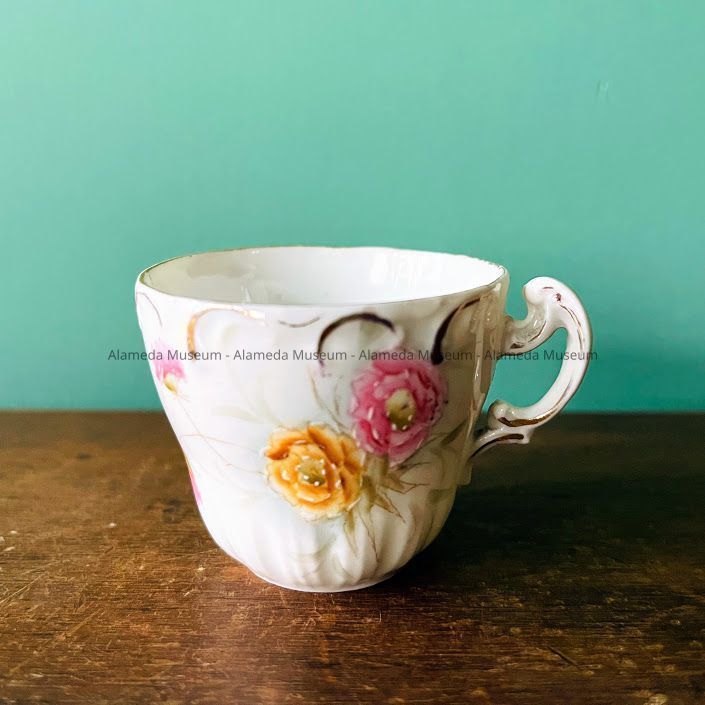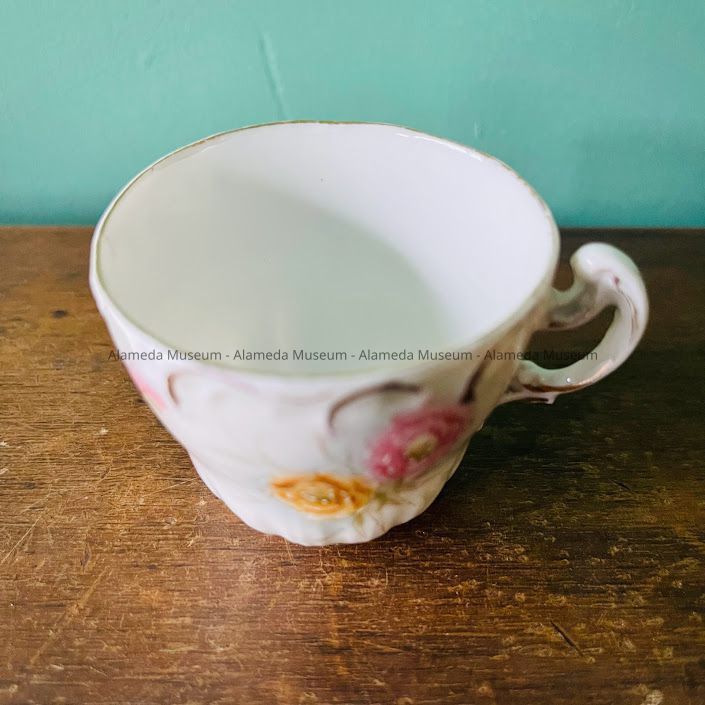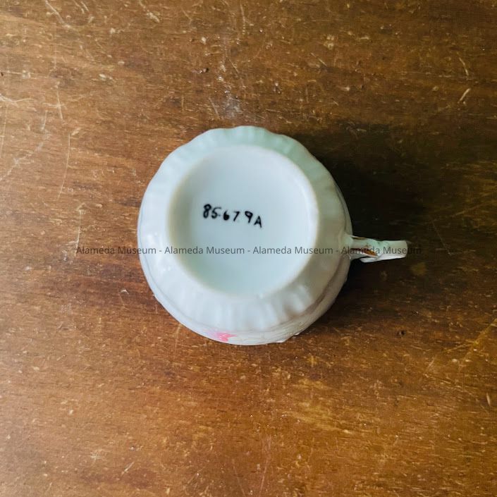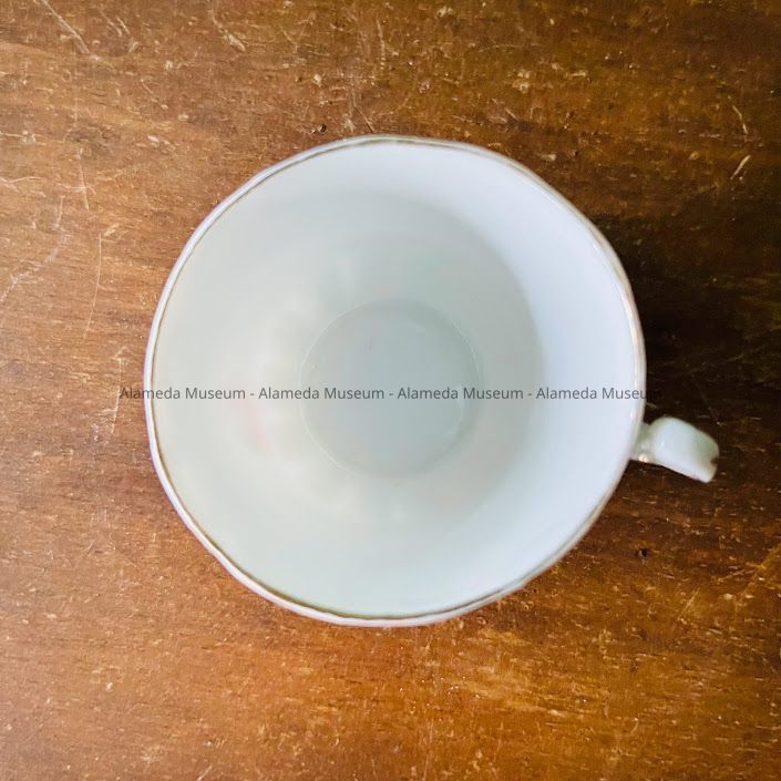 Black coffee size cup & Saucer of Roberta, daughter of Samuel M. & Harriet Holmes Haslett, old-time residents of Alameda. Roberta was the second child of the Hasletts and was born in Alameda in 1890.