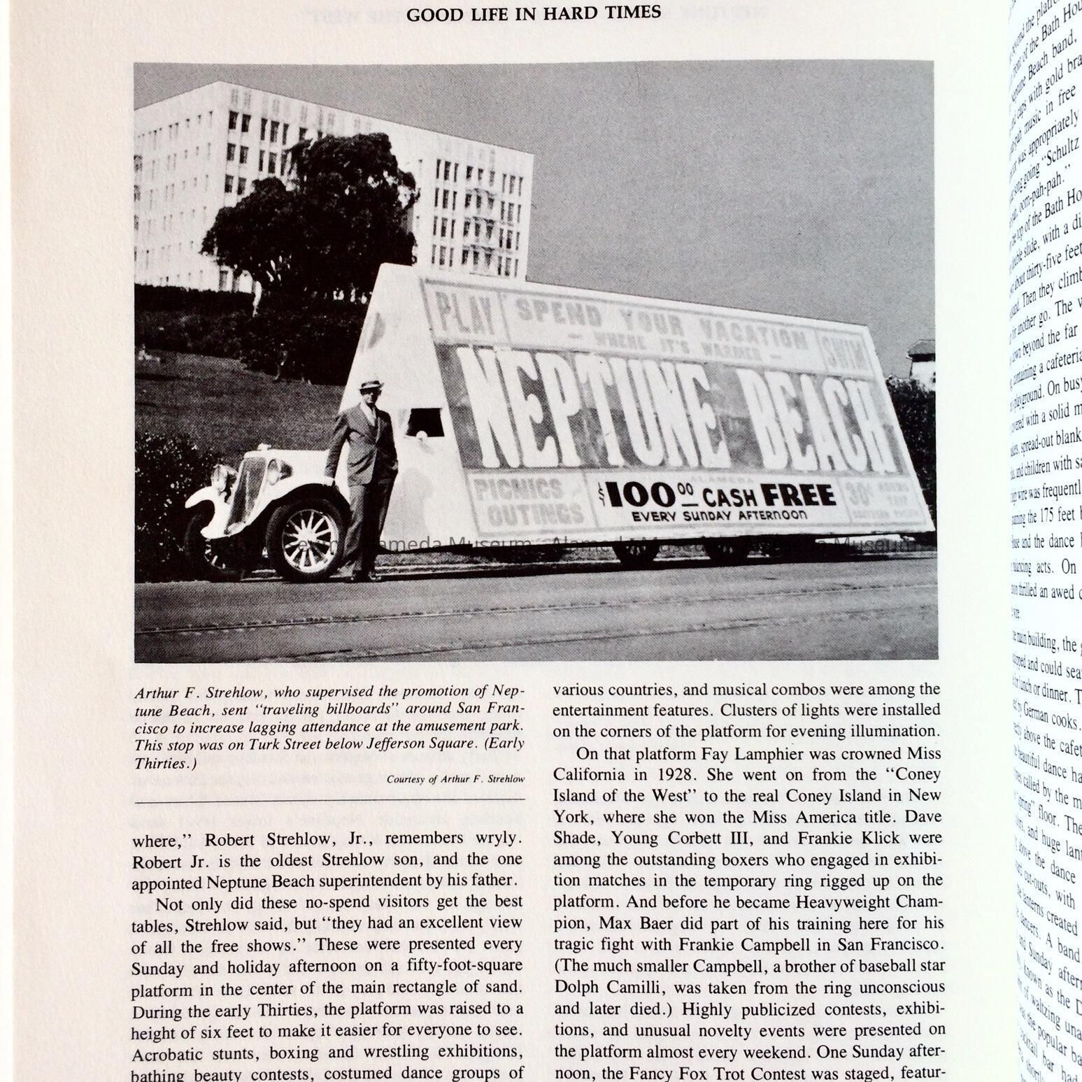 History of Object: Book about San Francisco Bay Area from around 1920 to WWII, including mention of Alameda in respect to commuter ferries to San Francisco, and a chapter on Neptune Beach.
