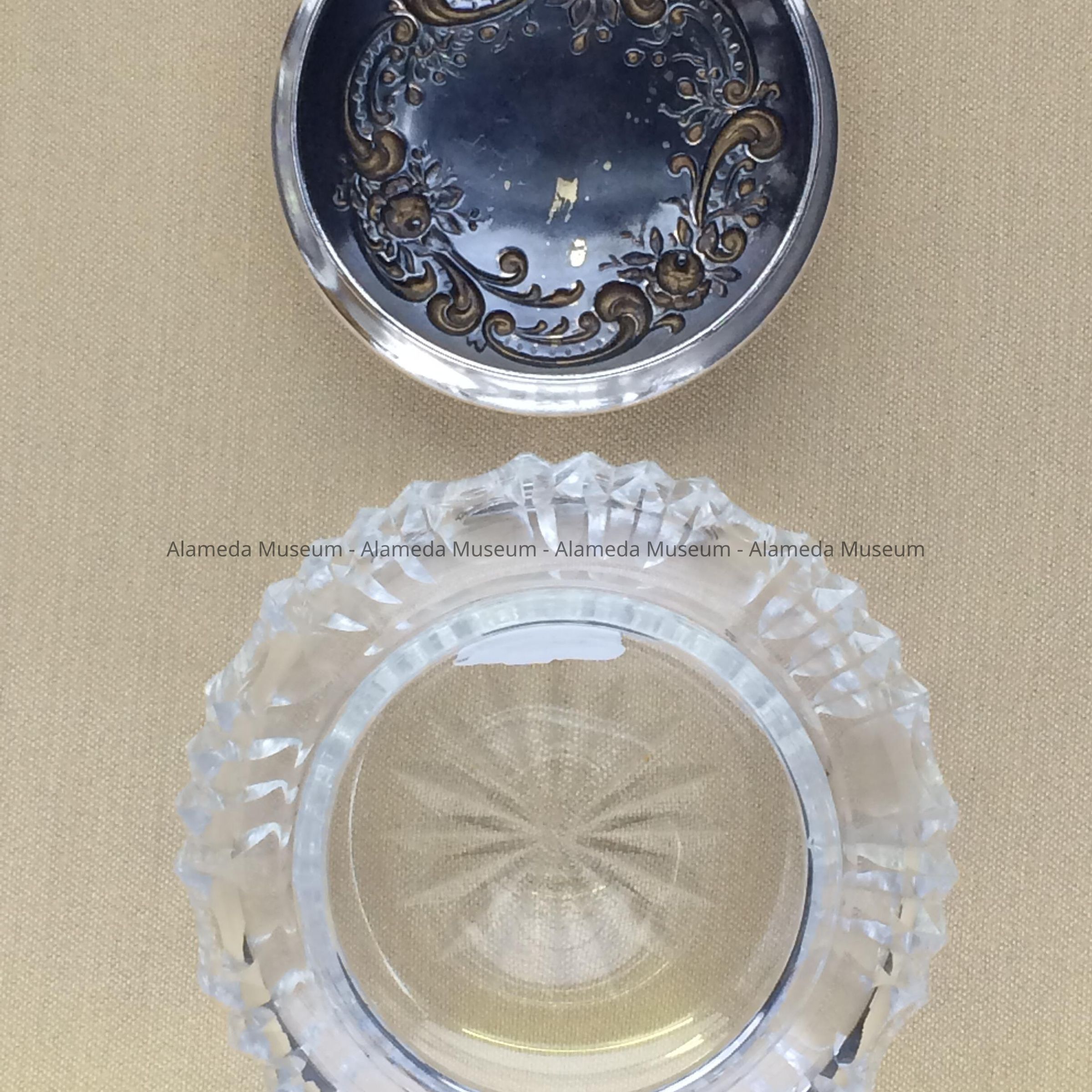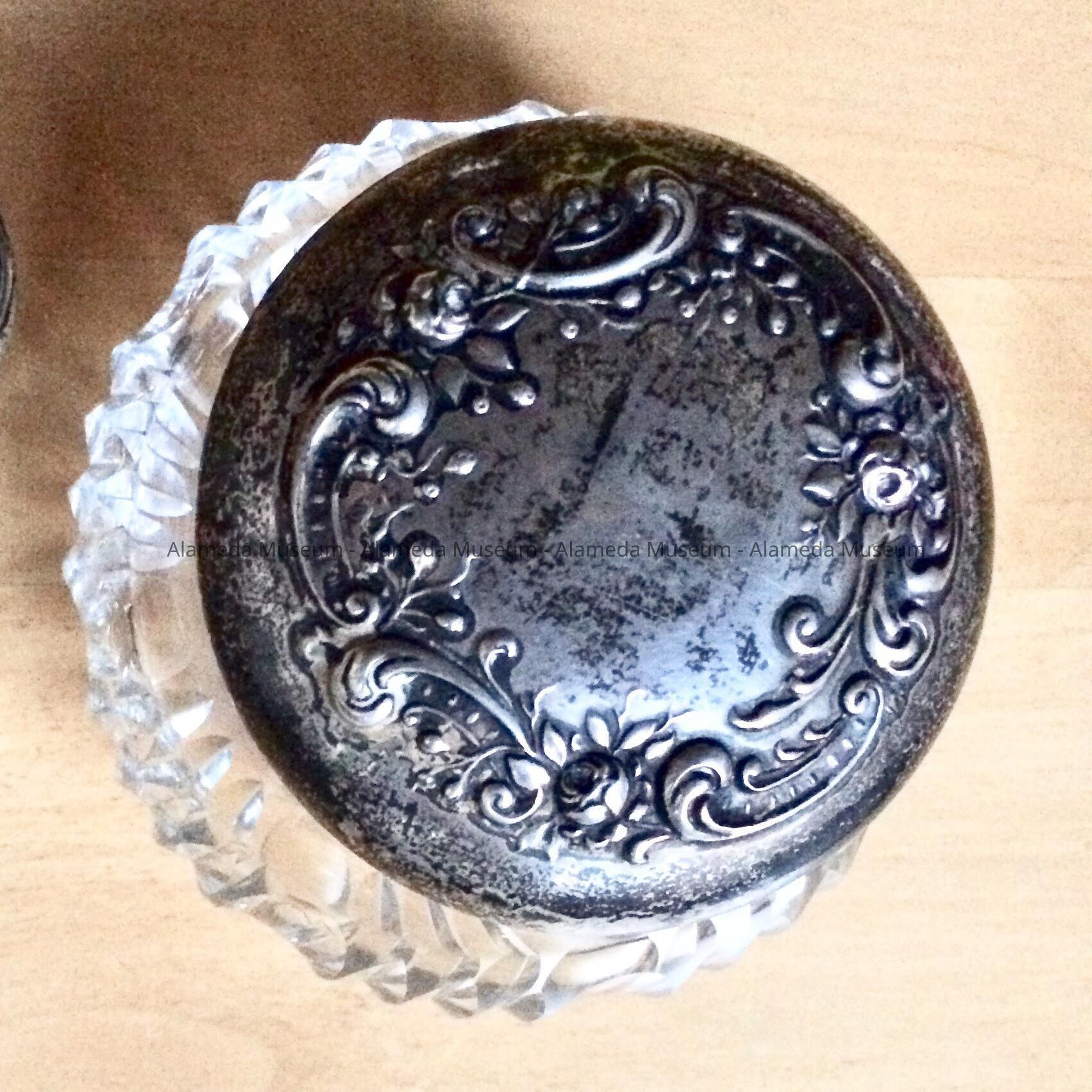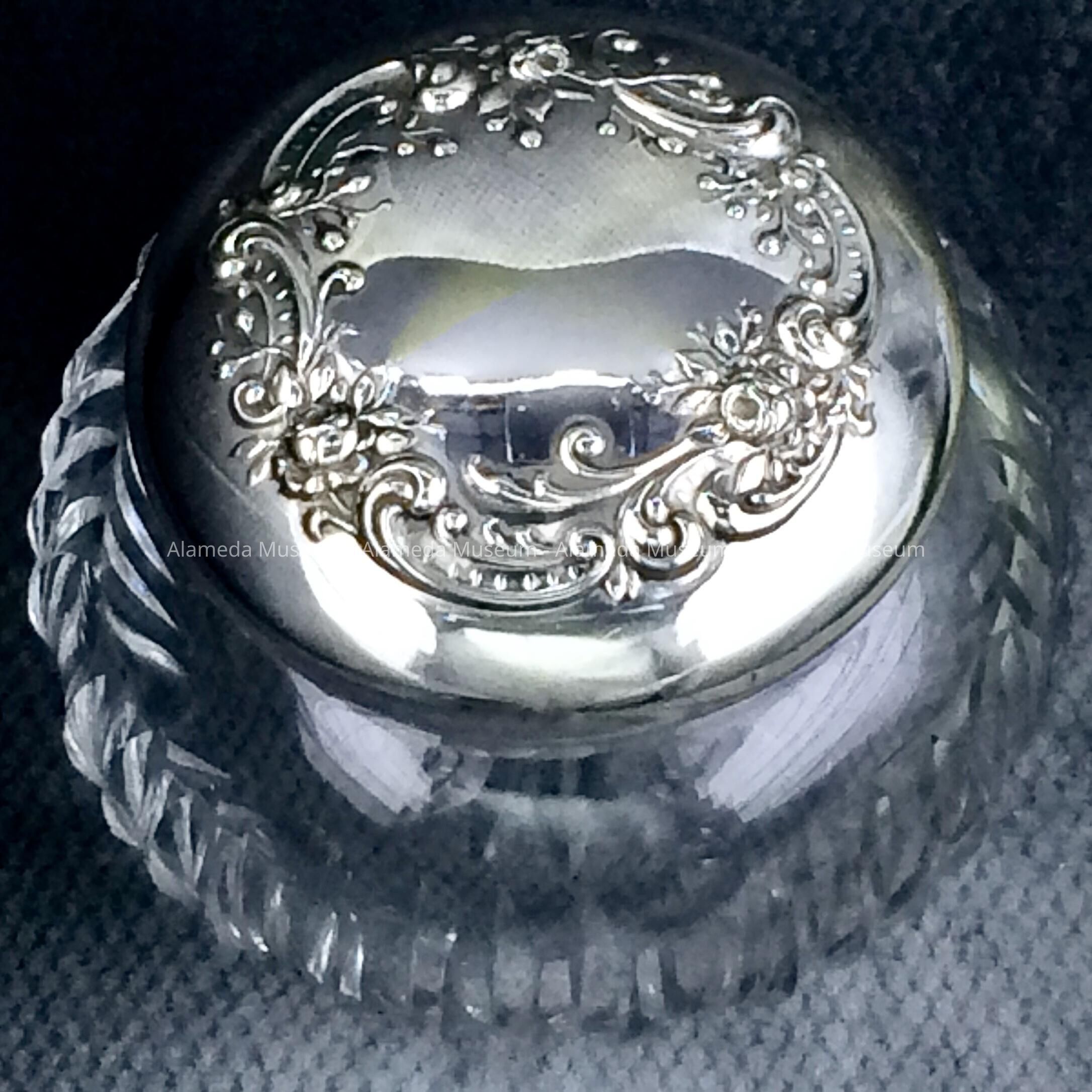 History of Object: Powder or dresser jar with lid from the Gorham company, from Providence, RI. The silver mark has no year mark, but no cartouches, suggesting manufacturing date of 1897. From 1865 to 1961 the company name was Gorham Manufacturing Co.